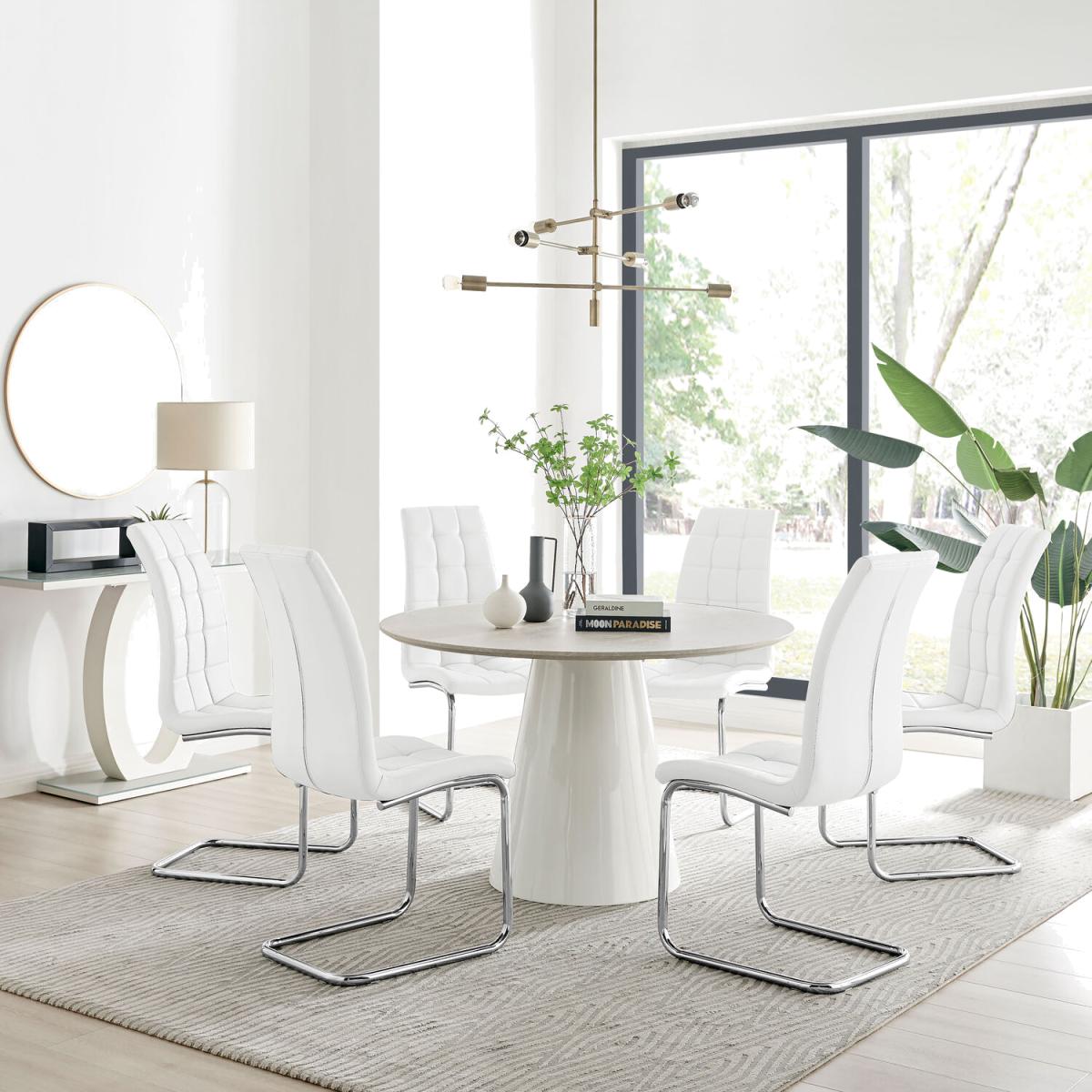 Our stunning Palma table with the stone-effect finish is a round dining table with a large statement tapered central pillar. It's a minimalist post-modern dream! The perfect balance of round and straight lines an uncluttered and elegant dining table solution that will be a real talking point in any modern dining room. The beige stone-effect top is very in right now, and is a firm favourite here at Furniturebox UK HQ. Elegant and modern with a touch of that classical chic style. Pair with some bold colours and metallic bursts in your chairs accessories to really make this pop, or keep it chic and simple with some understated tones. Comfortably sits 4 - 6, and is constructed from wood composite with a luxury stone-effect finish. This table is easy to keep clean, durable and will stay gorgeous for years to come. Also available in other colours and finishes. The smooth contours of the hatched pad and the single seat design combine to create a flowing feel to the Murano chair. It is shaped to offer maximum ergonomic support, whilst the deep foam cushion makes it delight to sit on. Both inviting and sumptuous, the Murano is sure to be a strong contender in your quest for the right dining chair.