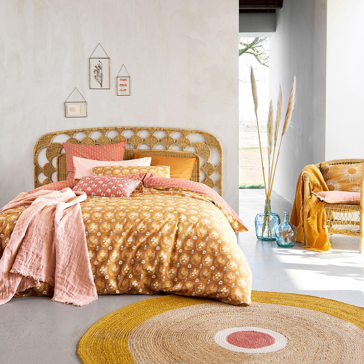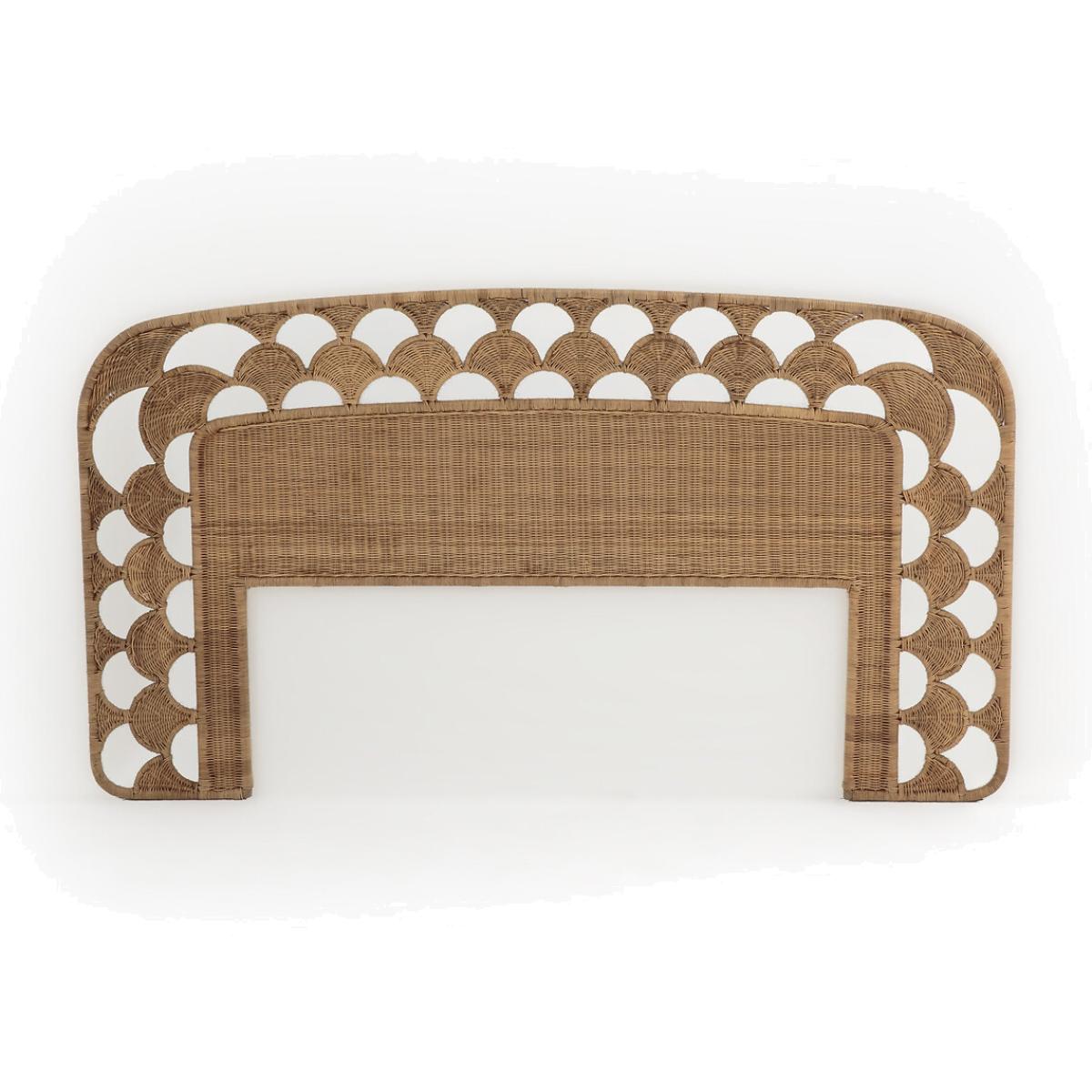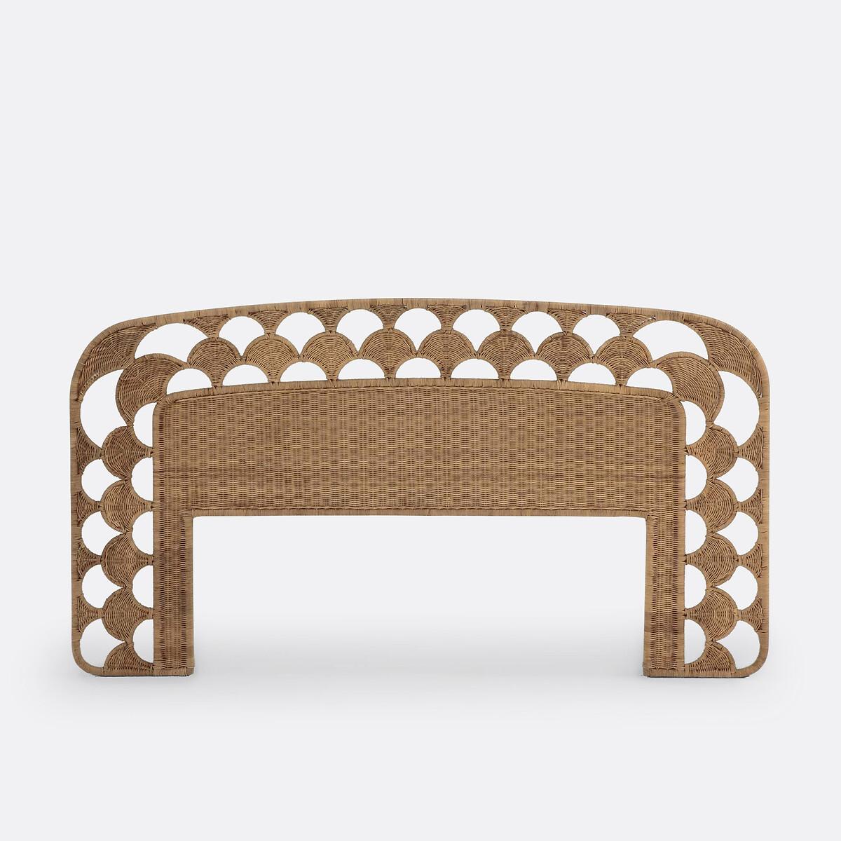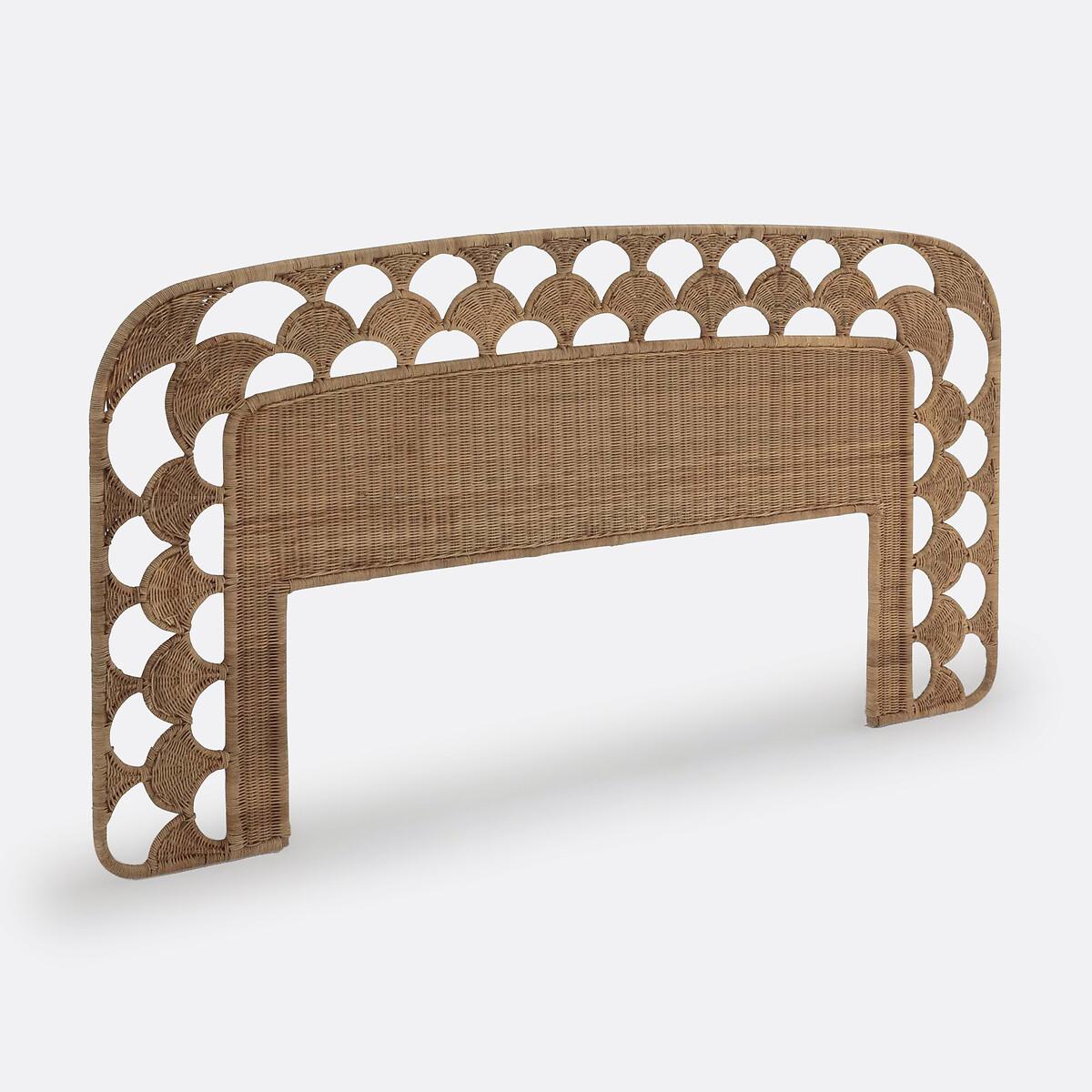 Work the rattan trend with this gorgeous handcrafted headboard. We love its distinctive scallop-effect edging and soft, rounded edges. Original and bohemian, it seems to fill the entire room with a burst of exotic fragrance... Artisanal craftsmanship. Product Details • Steel frame epoxy finish covered with woven rattan in scalloped design • Supplied pre-assembled. Dimensions • Width: 186cm • Height: 103cm • Depth: 3cm. Home Delivery:Sold pre-assembled. It will be delivered to your door. Note! Please check that all access points are large enough to accommodate your delivery (doors, stairs, lifts).Parcel dimensions and weight:1 parcel188x110x5 cm12.5kg