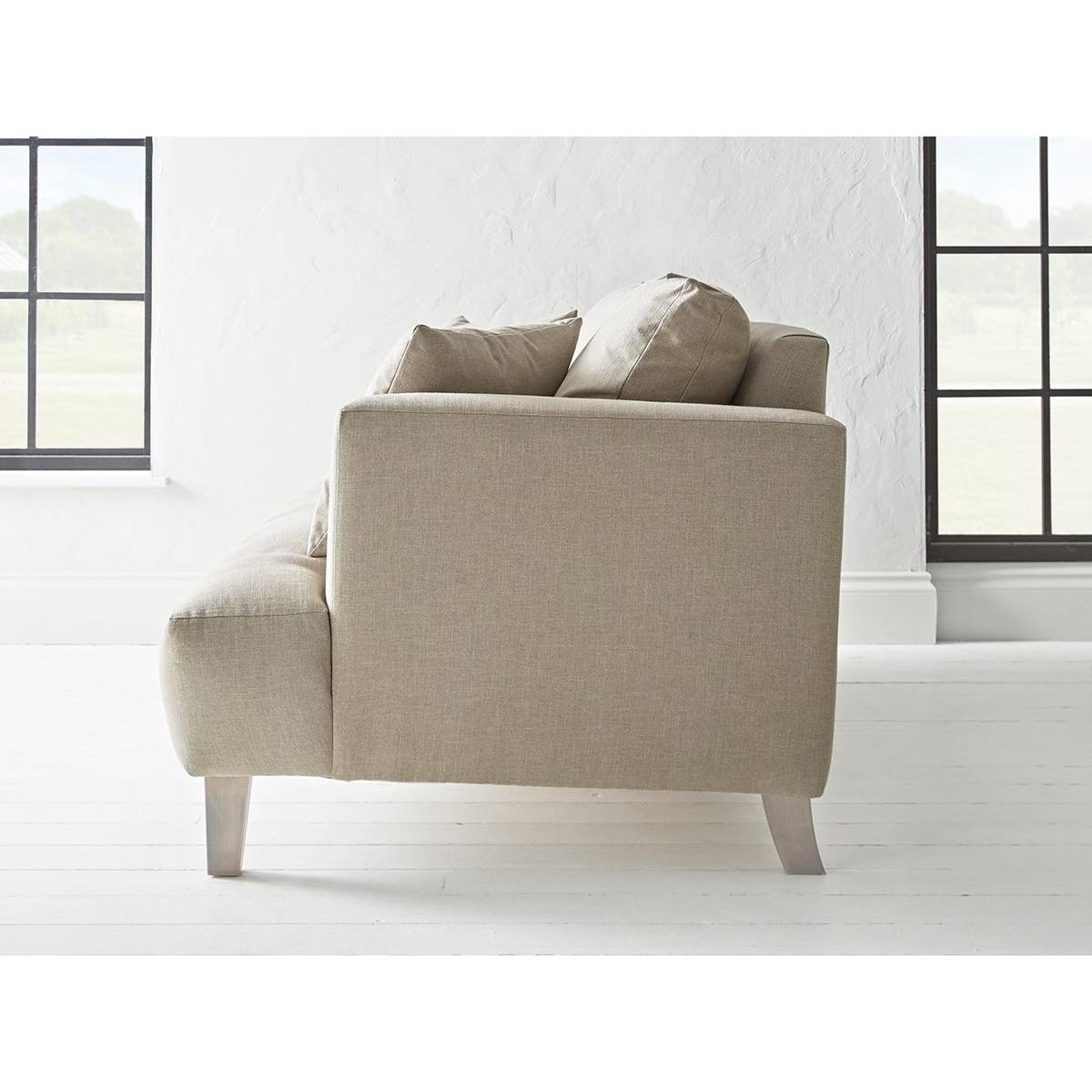 The Palma sofa boasts simple clean lines and the enduring appeal of feather cushions. Recessed sturdy arms offer an open profile and wider seating area for the sofa while a mid-height back and deep filled cushions make for cosy support. Wedge shaped plain oak legs complete the look. The sofa is available in two or three seater options. The Palma range includes two seater and three seater sofas, a loveseat and an ottoman. Our Palma collection can be upholstered in a choice of 34 distinctive shades and six fabrics to suit your style. Read our Upholstery FAQs View our full Upholstery Terms and Conditions