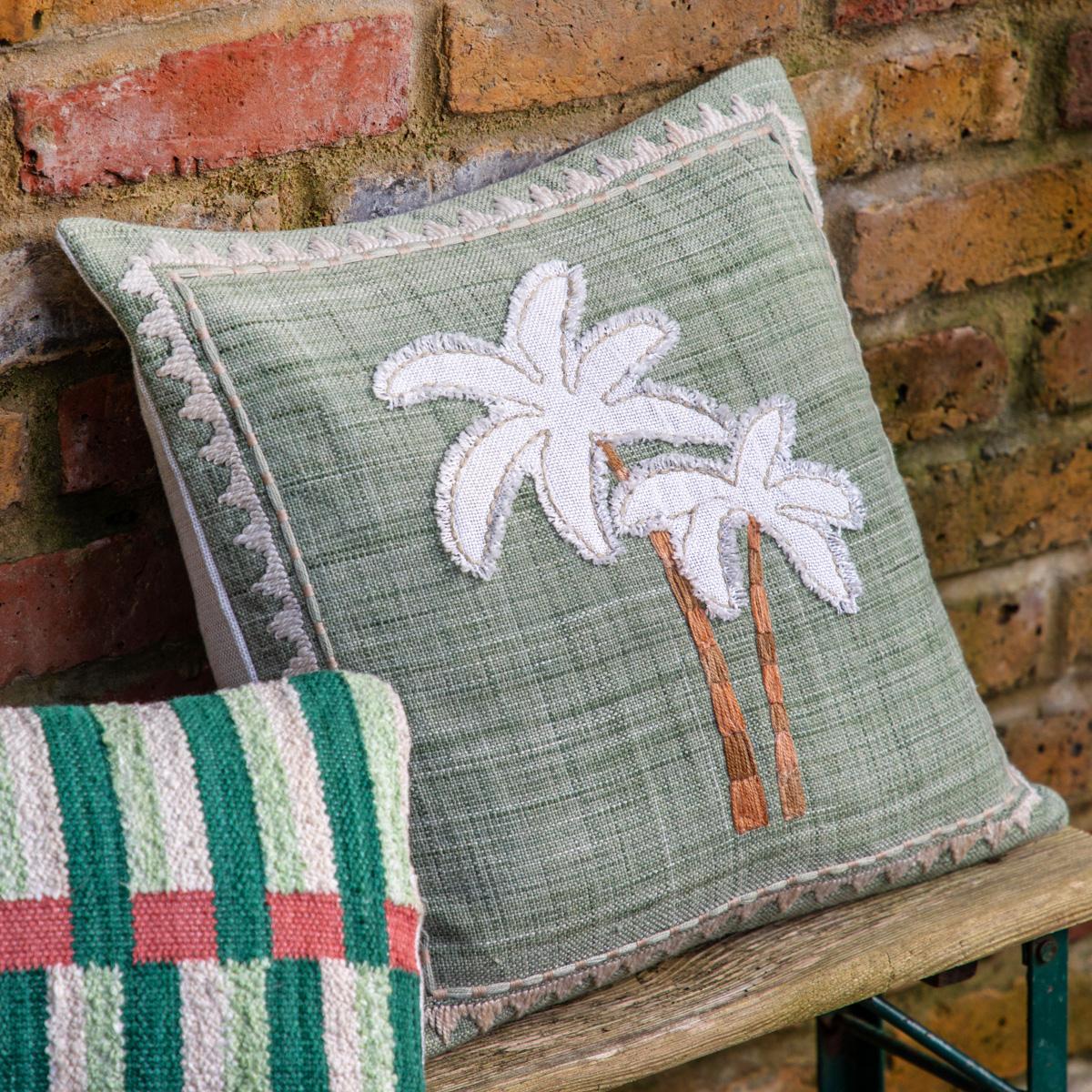 The Palmera Cushion is a versatile piece that adds a touch of tropical charm to both contemporary and classic interiors. I love its relaxed, botanical vibe, which makes it perfect for casual living rooms, sunrooms, or outdoor seating areas. When styling, consider layering it with neutral or textured cushions to create a balanced look, and it works particularly well with natural fibres like linen or rattan for a cohesive, laid-back aesthetic. For practical tips, pair it with simple, understated furnishings to let the embroidery stand out or use it as a statement piece on a neutral sofa to inject colour and personality effortlessly.