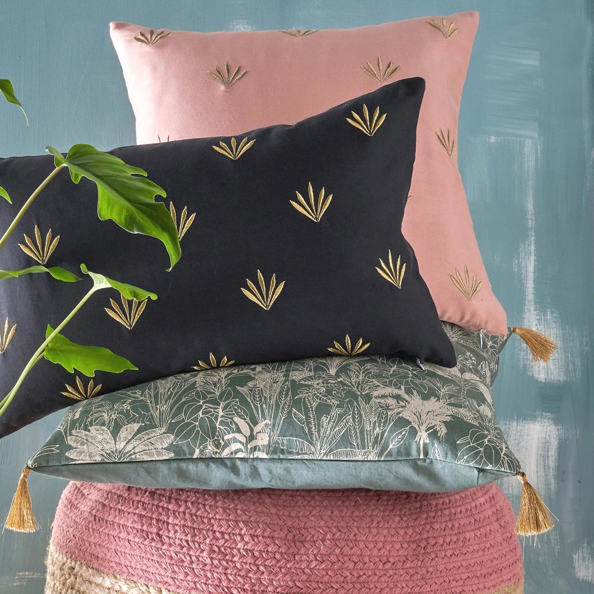 Go for a glamour with a hint of 1920s decadence in trendy pastel tones. This cute cushion cover from our Palmia range has a stylised palm leaf motif embroidered on cotton satin and is plain on the reverse.