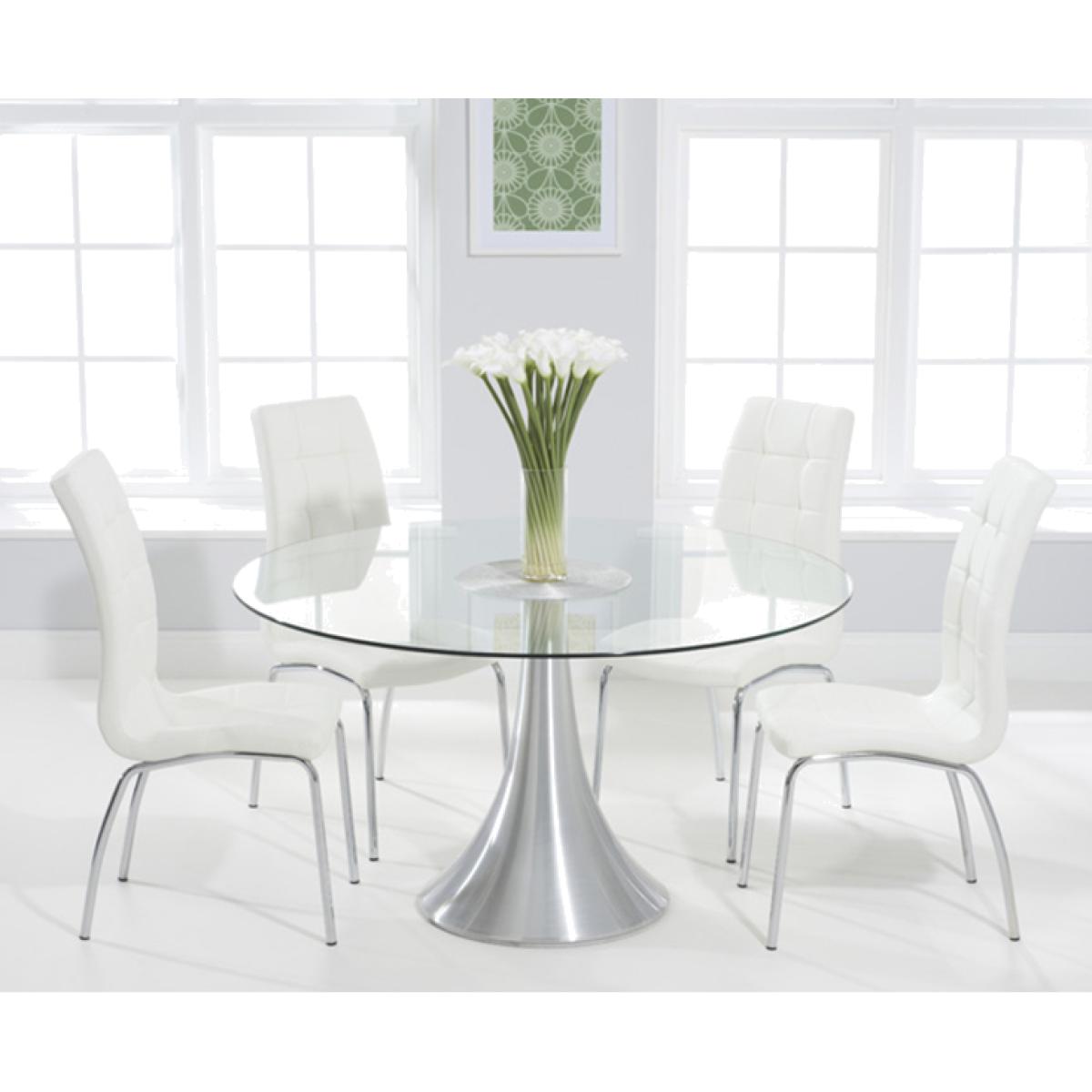 Paloma 135cm Round Glass Dining Table With 4 Grey Calgary Chairs