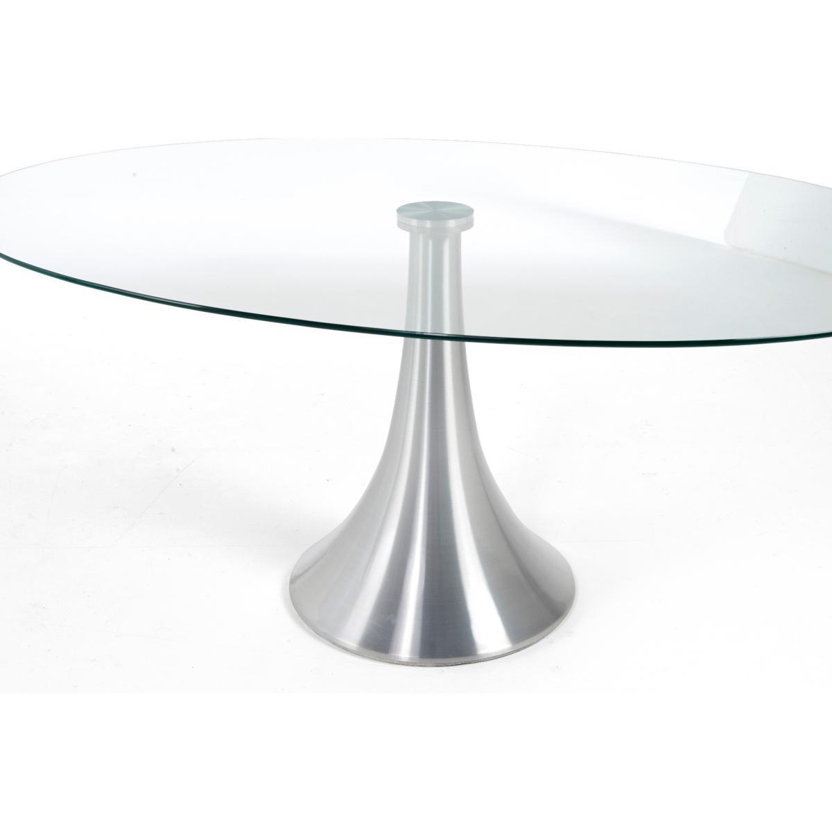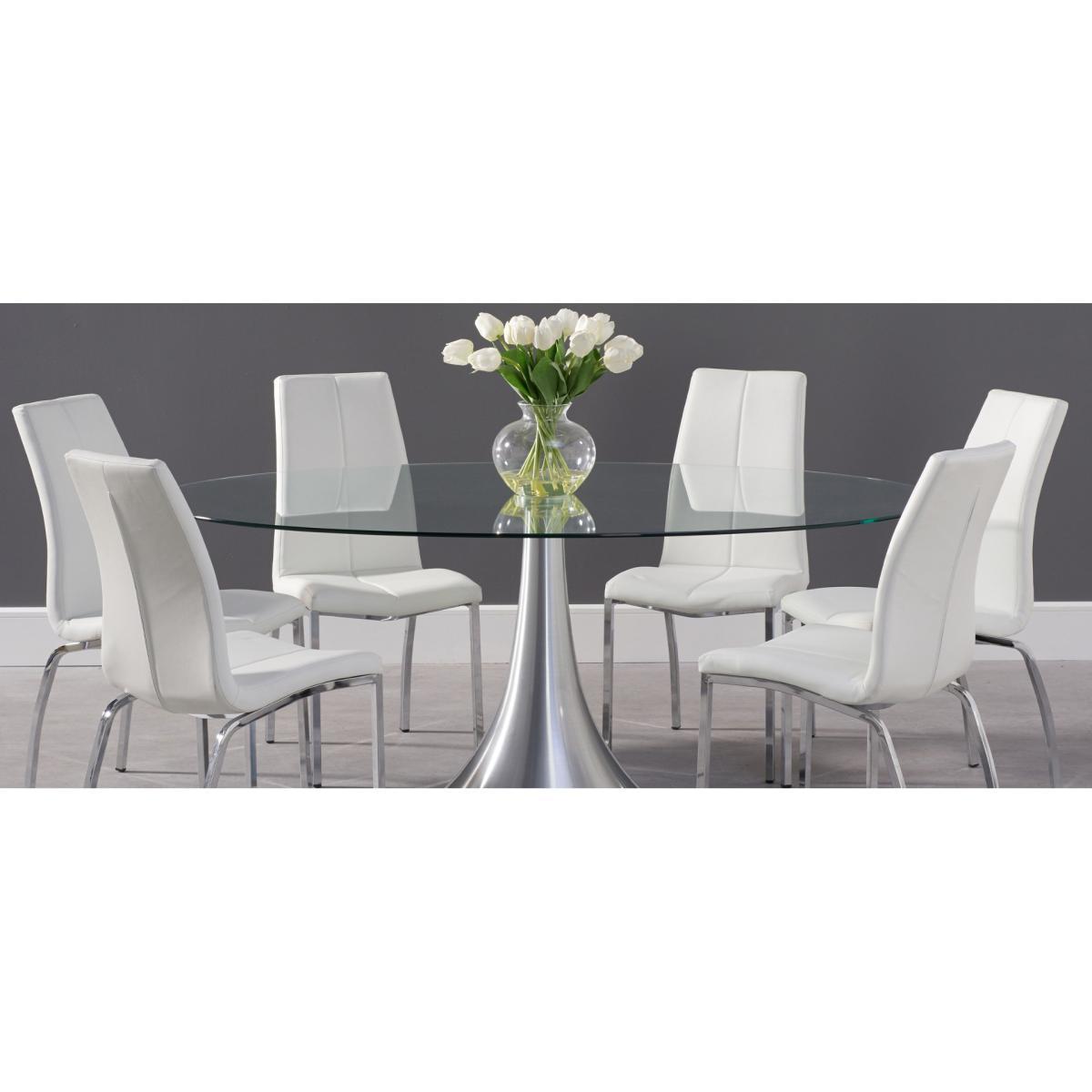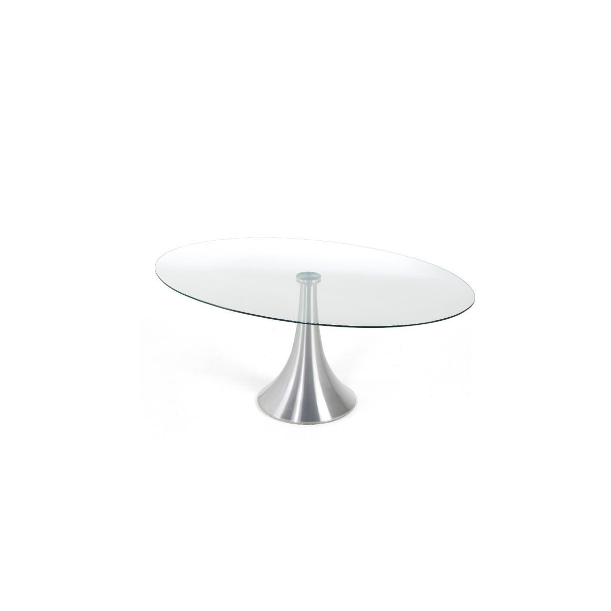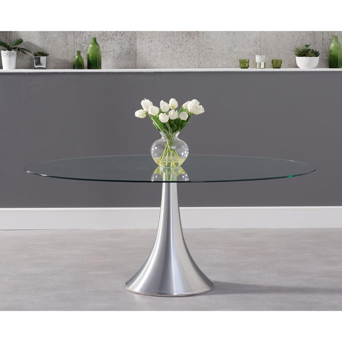 Offering smooth and modern simplicity, the Paloma table will bring elegant understated style to your interior. Seating up to 6 people, it’s perfect for placing in your kitchen, living room or dining room. A sturdy aluminium pedestal leg with a stone base creates solidity while allowing chairs to be placed around it unencumbered by table legs. This supports an oval, 10mm tempered glass tabletop: strong and safe, it provides the ideal surface for drinks or intimate dining.