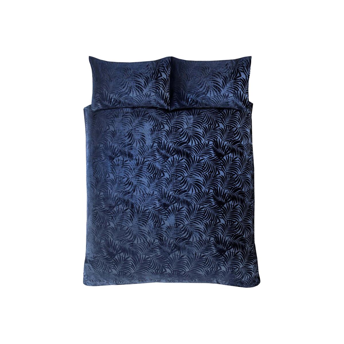 Paloma features an all over palm leaf plush velvet jacquard in a rich shade of emerald green or navy blue. This will add a touch of tropical luxury to your bedroom. With a plain polycotton reverse, it ensures a relaxing nights sleep while adding that wow factor to your bedroom.