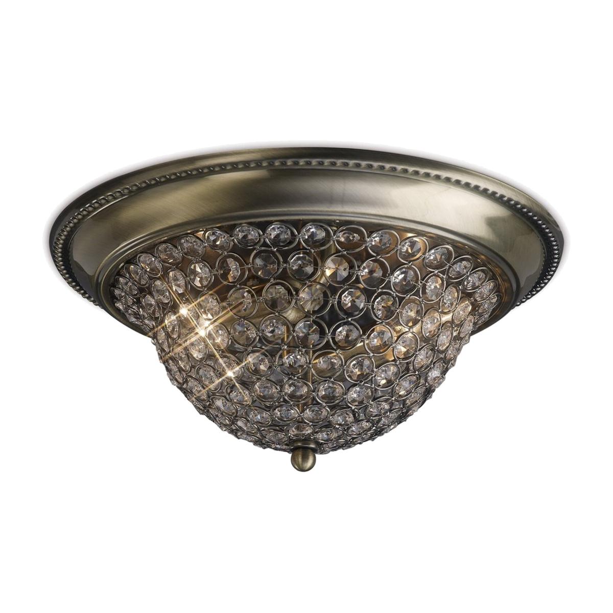 Paloma Flush Bowl Ceiling Medium 2 Light Antique Brass, Crystal - Antique Brass