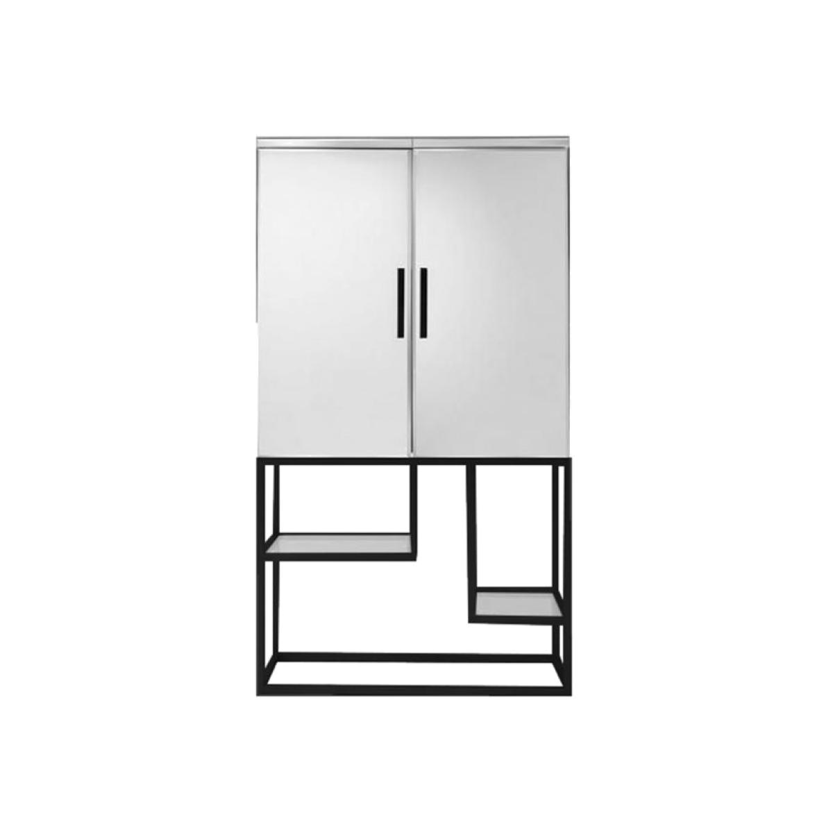 I love this piece for its sleek, modern look topped with a hint of industrial edge thanks to the black metal base. It works really well in contemporary or minimalist interiors, especially in kitchens or living areas where you want to display drinks or glassware in style. Practical styling tips include using the glass cupboards to showcase beautiful bottles or glassware, keeping cold drinks on hand for entertaining. The open metal shelving at the bottom is perfect for storing accessories or decorative items, adding visual interest and balance. Overall, it’s a versatile and functional piece that feels both stylish and practical, making it a great statement for modern spaces.