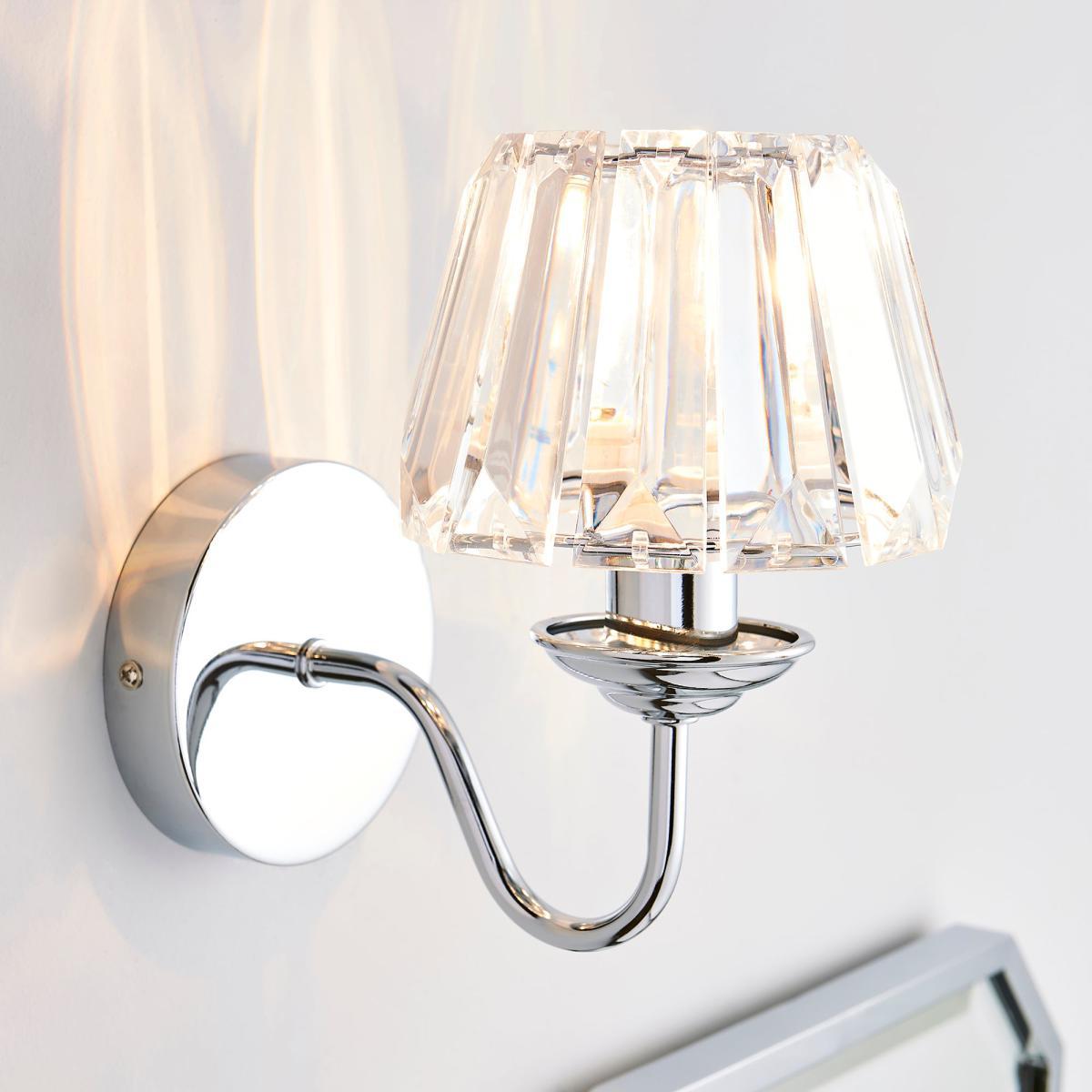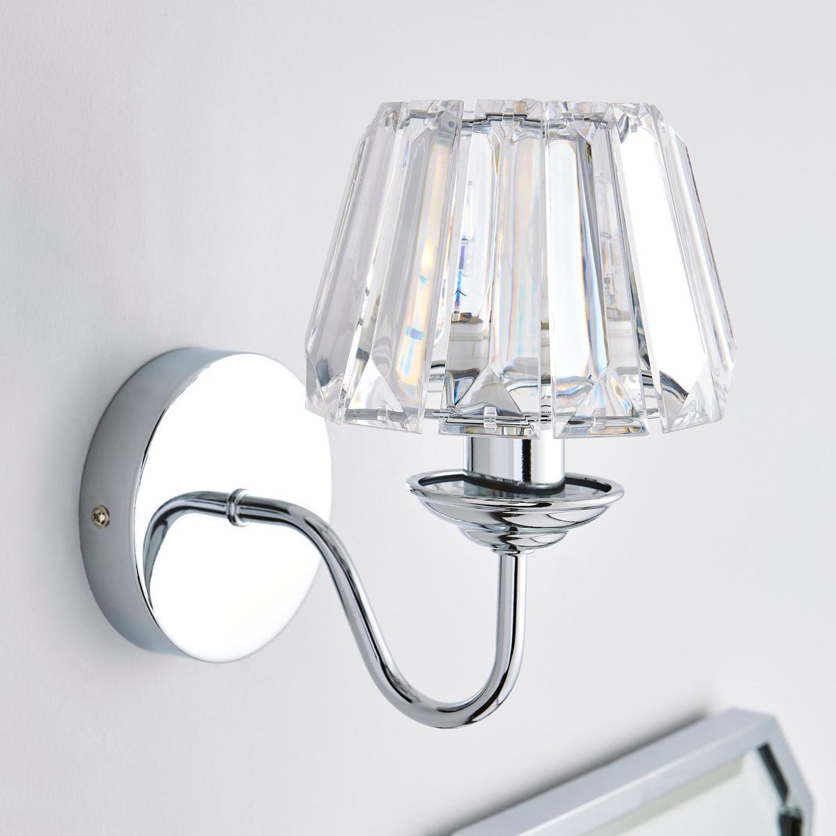 Featuring an acrylic prism and a stylish chrome metal finish, this contemporary wall light would be the perfect way to update your walls. Click. Here. To view our range of bulbs.