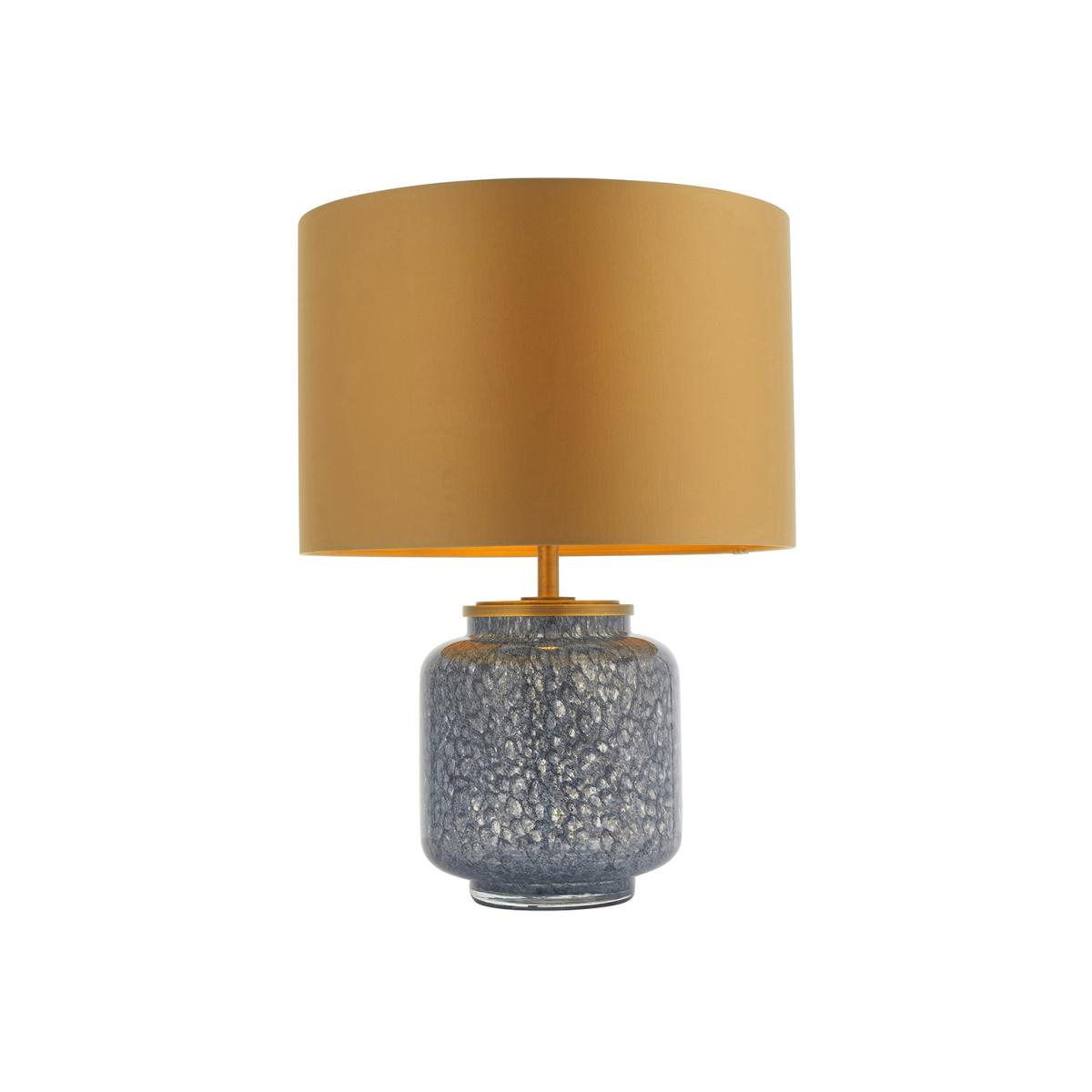 Add a touch of class with the Pamela table lamp finished in gold. With a dramatic gold colourblock fabric shade and an exquisite blue glass base with mottled detailing, Pamela has a majestic presence.
