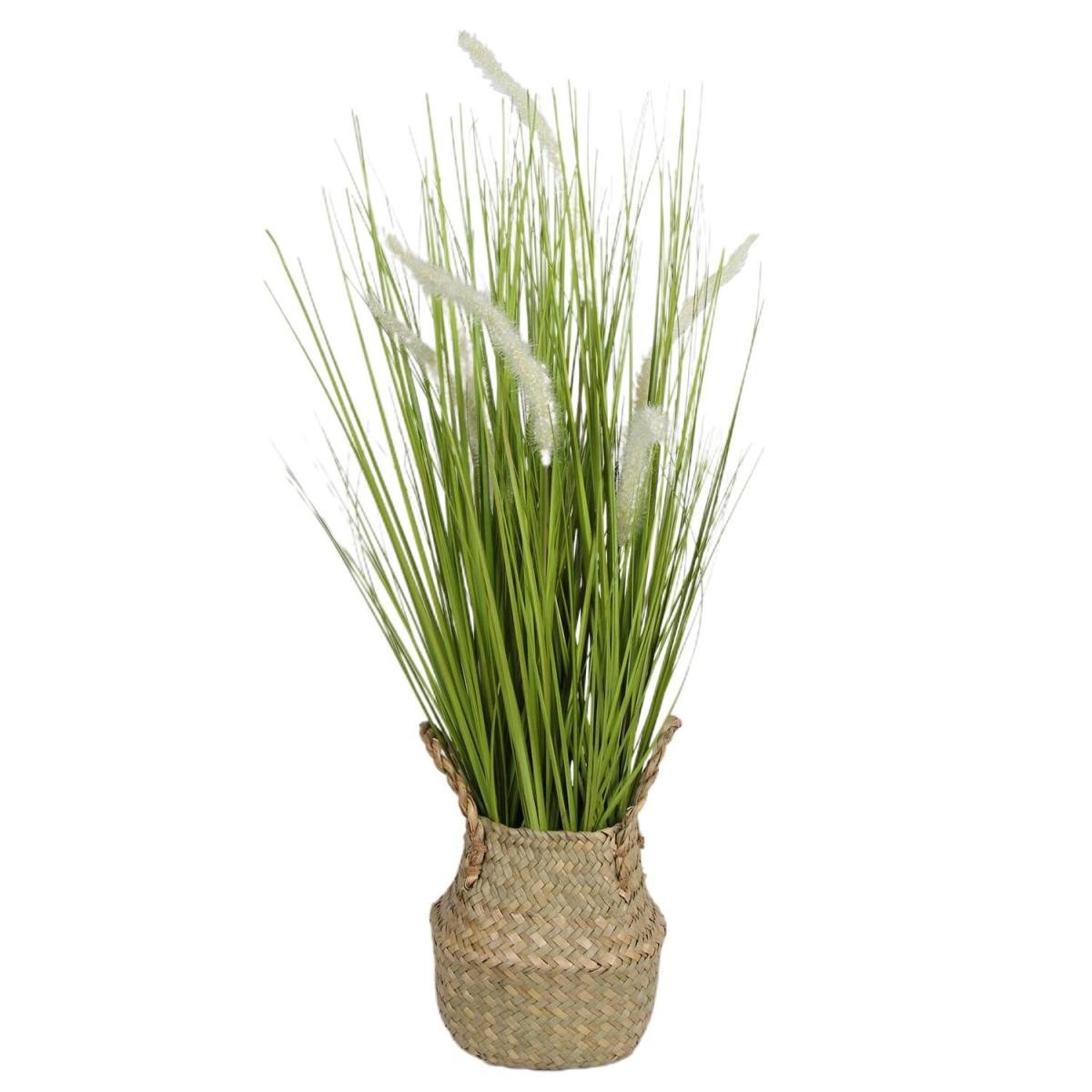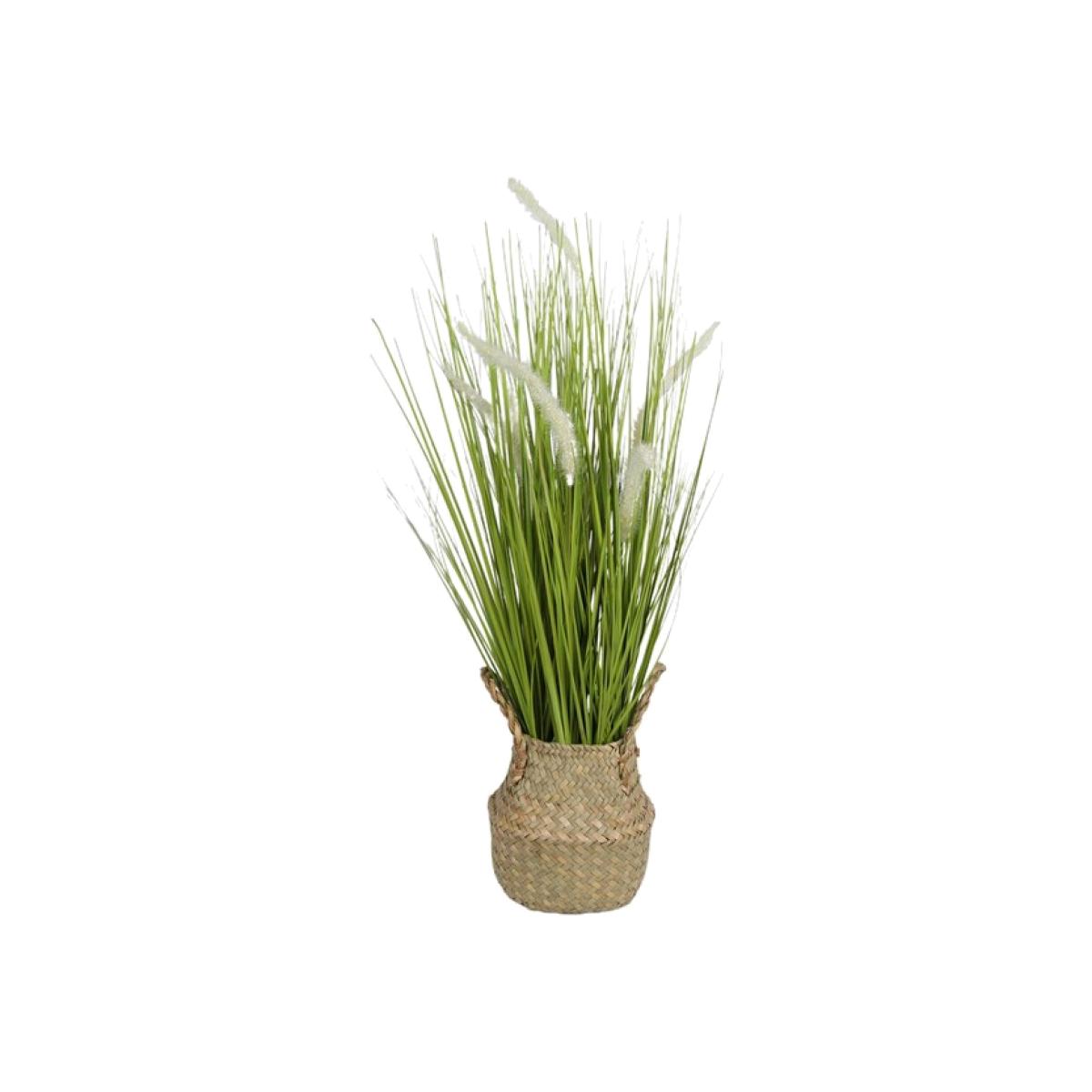 Brighten up any space around your home with this potted Artificial Pampas with Woven Basket that requires no maintenance! Elegant with wispy stems for a rustic and romantic look, this tall grass helps to draw the eye on mantles, accent tables, or even on the floor in a bare corner! Potted in a wicker-effect basket, it's easy to coordinate in any home decor styles.