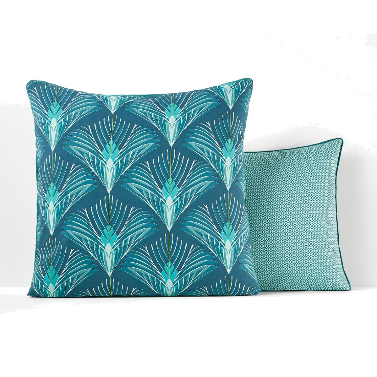 The Pampelune cotton percale pillowcase. A pattern directly inspired by the art deco trend where geometry and colour reign!The cotton percale offers a pleasant feeling of freshness and lightness. Its tight weave makes it particularly soft for premium comfort. A matte and smooth material that will soften over time. Product Details • 100% cotton • Percale • 200 thread count: The higher the thread count, the higher the quality of the weave • 1 side feather patterns, stylised, 1 side micro graphic patterns • Contrasting taped edging. Care Advice • Machine washable at 60°C • By washing your laundry at 40°C instead of 60°C, you limit energy consumption. Sizes • 50 x 70cm: Rectangular pillowcase • 63 x 63cm: Square pillowcase • OEKO-TEX® Standard 100. Standard 100 certification by OEKO-TEX® tests textile products for harmful substances via an independent, international label.