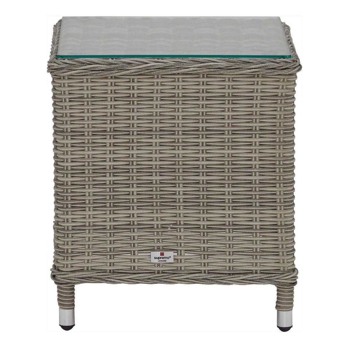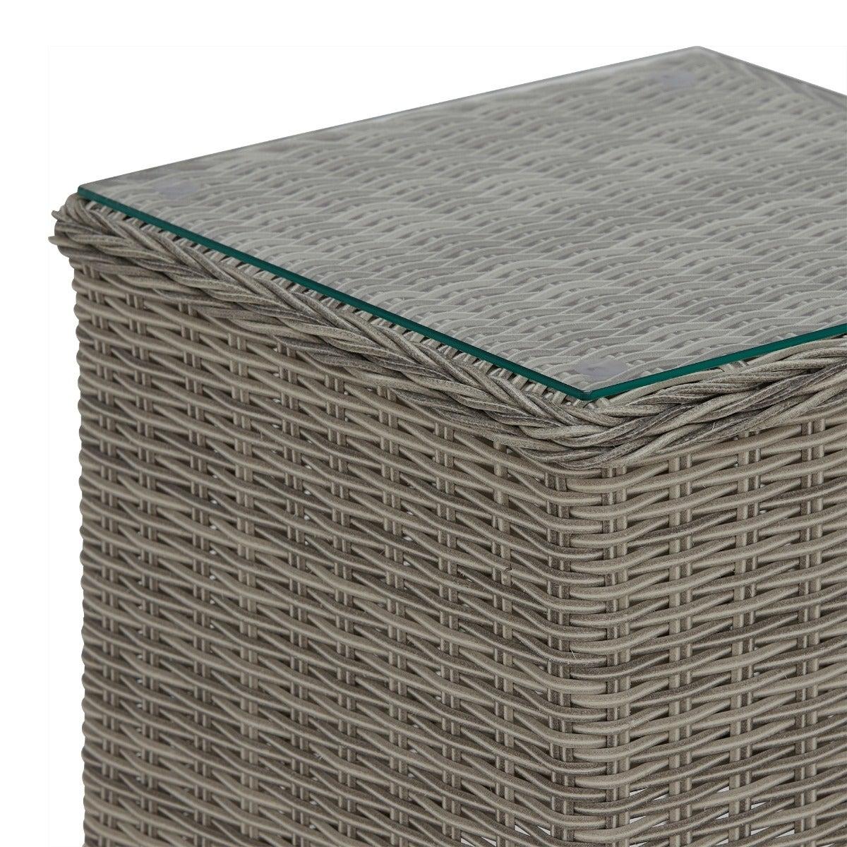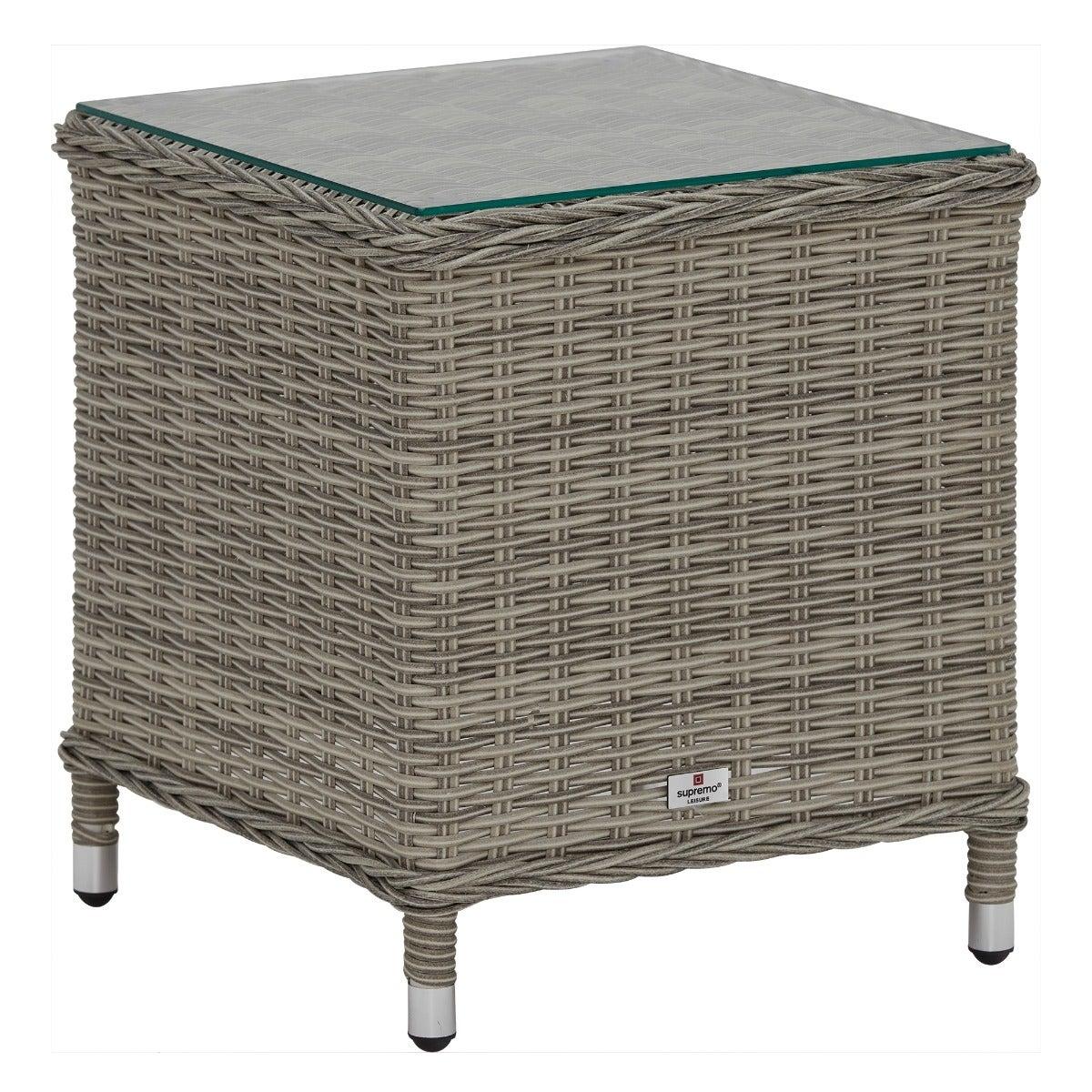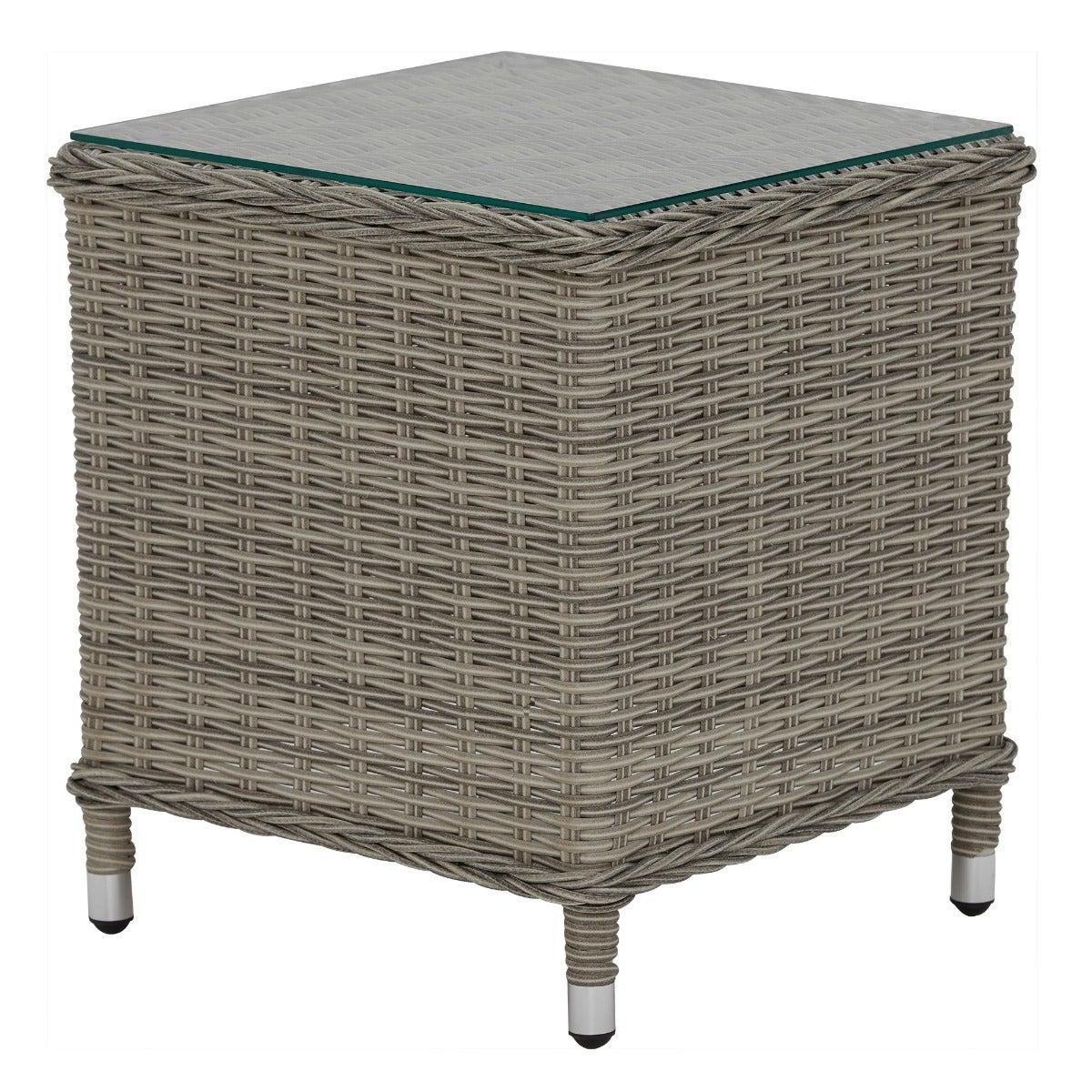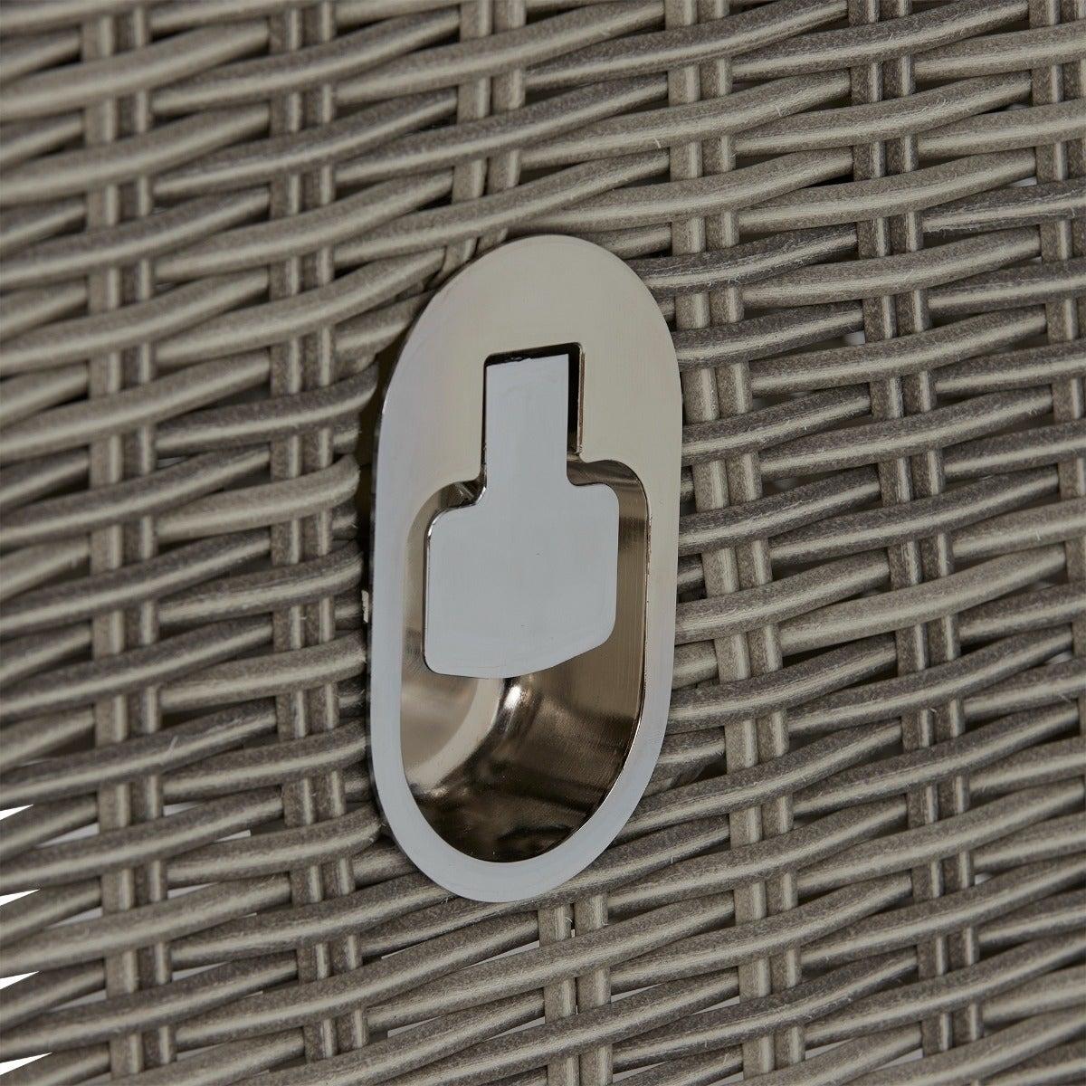 Design. In contemporary grey tones, the Pamplona reclining garden lounge set features rattan weave and all-weather fabric for lasting quality. The generously cushioned backrest can be adjusted by a lever, so you can lay back in luxury when the sun shows its face. These reclining garden chairs come complete with footstools for added comfort, while the matching side table helps keep those summer essentials on hand.