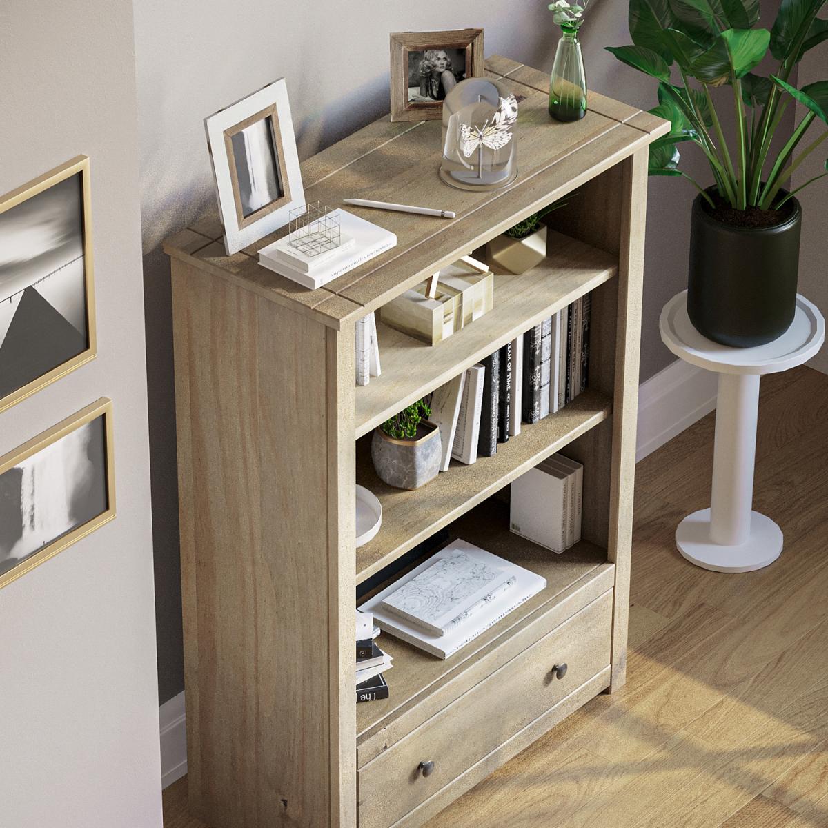 I like this pine bookcase for its straightforward design and warm, natural finish. It suits Scandi, cottage or coastal interiors and fits neatly into a hallway, home office or children’s room. The adjustable shelves let you accommodate tall volumes or display objects, while the lower drawer keeps smaller items out of sight. For styling, group books by colour or height, then break them up with a small plant or ceramic vase to add texture. A woven basket on the bottom shelf offers extra storage and the drawer is ideal for loose paperwork or chargers. Position against a pale wall so the grain really stands out, and consider swapping the knobs for brass or matt-black handles to modernise the look.