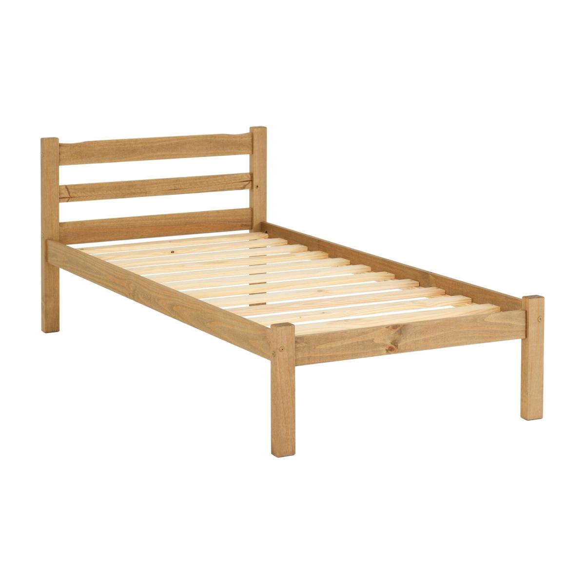 Give your bedroom a rustic revival with the Panama Bed. Offering style and comfort, this bed has been carefully crafted from solid pine with a beautiful natural oak wax finish. Featuring a strong slatted head and foot end, the Panama Bed is sure to be a lasting addition to your bedroom. UK Mainland delivery only, between 9am - 9pm (weekdays) the courier will contact you on the day of delivery to offer a time slot. This takes place within 10 working days (Ground floor only). Please also ensure that we have a note of your up-to-date address and contact information, to be passed to the couriers.