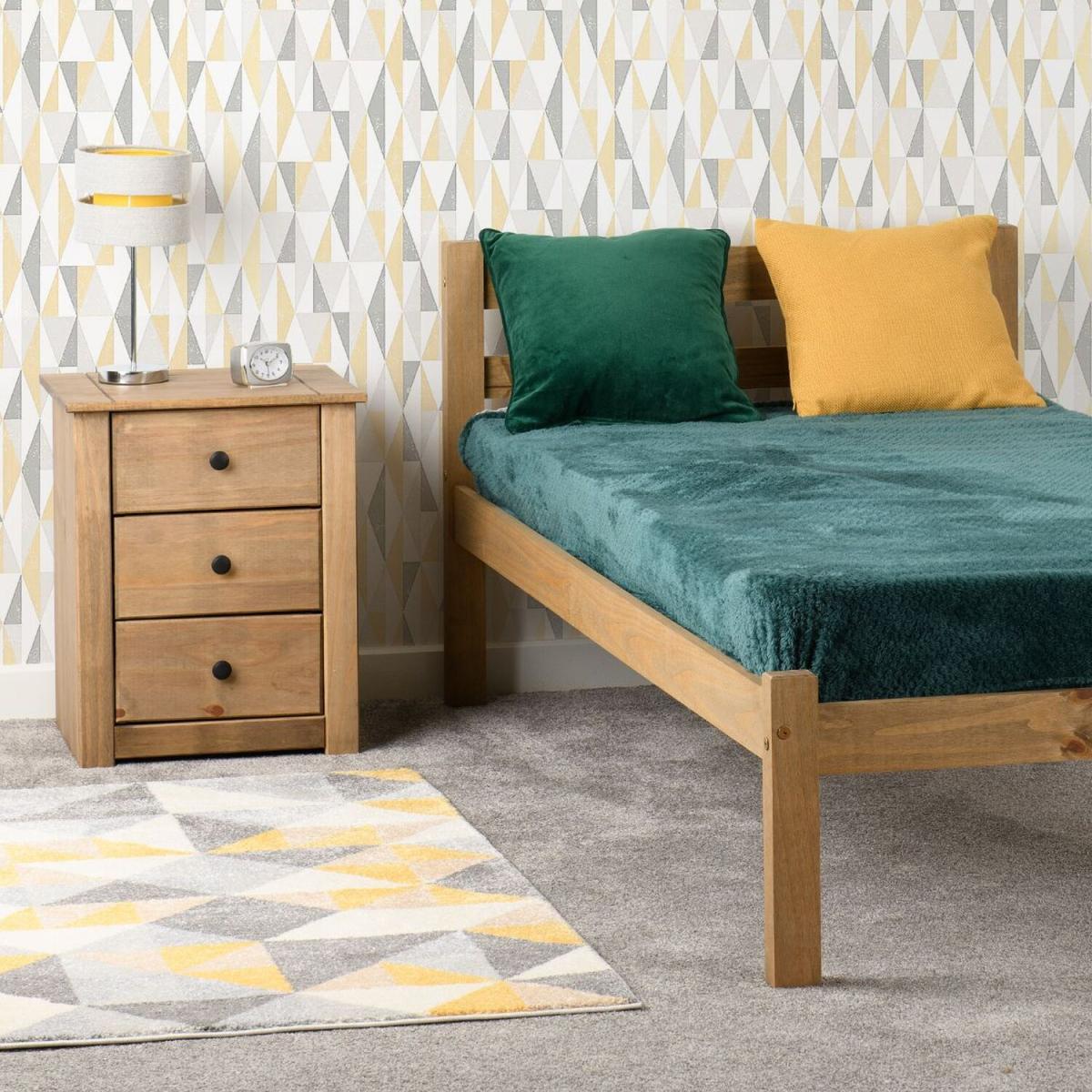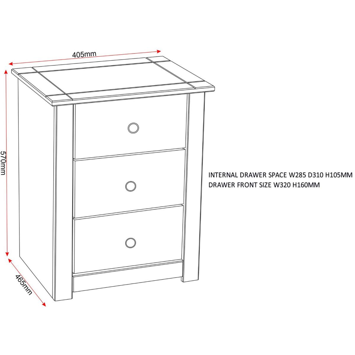 The Panama 3 Drawer Bedside Chest is crafted from solid pine with a natural wax finish and features contrasting black handles. This bedside chest offers plenty of space with its three drawers and will feel at home in any bedroom. UK Mainland delivery only, between 9am - 9pm (weekdays) the courier will contact you on the day of delivery to offer a time slot. This takes place within 10 working days (Ground floor only). Please also ensure that we have a note of your up-to-date address and contact information, to be passed to the couriers.