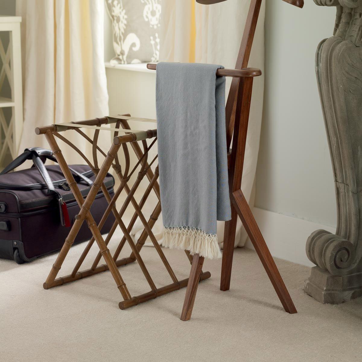 A stylish foldaway luggage rack in faux bamboo - crafted from turned wood - the webbing straps are tough enough to support even a large suitcase. And ideal addition for a guest bedroom. Panama Foldaway Luggage Rack, Wood
