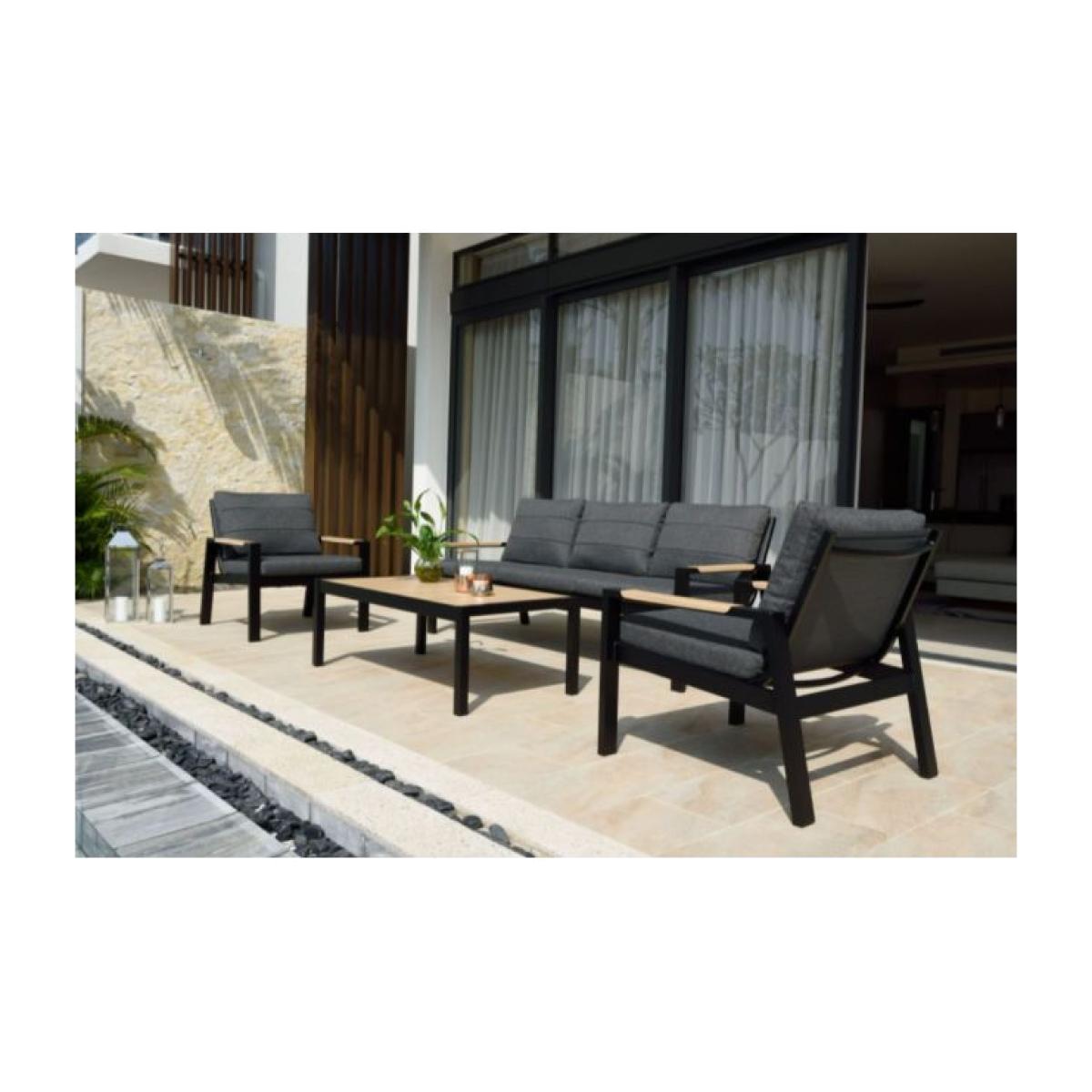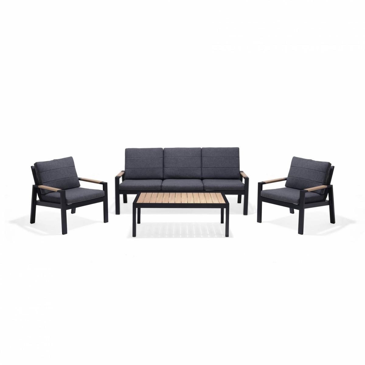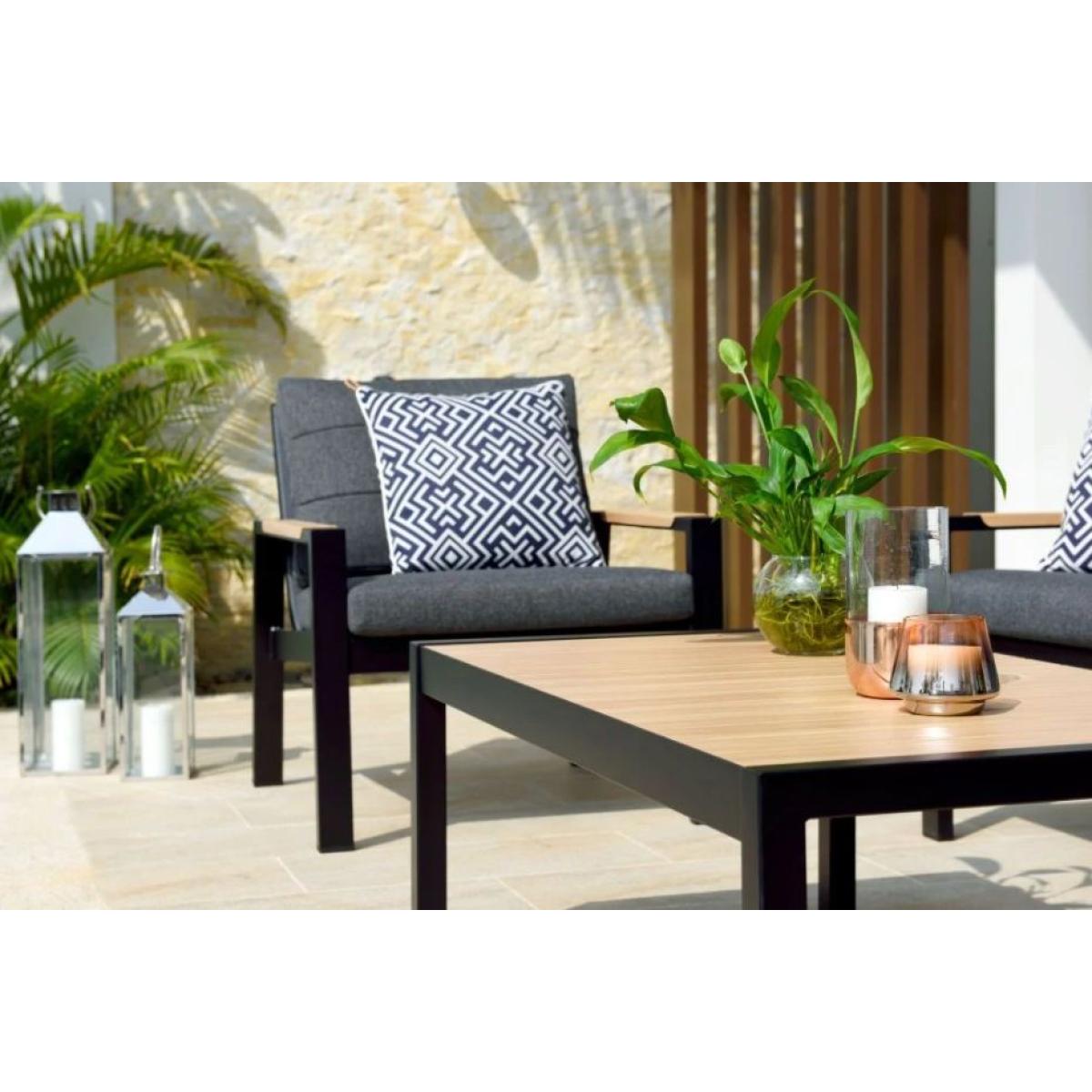 The Panama Lounge Set by Lifestyle Garden is a range characterised by contemporary design and the combination of modern materials. The sleek, minimum maintenance Aluminium set features a new finishing technology, Alu Print which gives the illusion of wood accents on the chair arms and tabletops. Alu Print is a way of printing beautiful finishes onto aluminium profiles to lift the look of the material to the next level. This adds a natural look to the metal, whilst maintaining a very low weight and high durability, adding just that extra touch to the pieces and allowing for zero maintenance and premium weather resistance. The Panama Lounge Set consists of the following: 1 x Panama 3 Seater Sofa - W 199cm x D 80cm x H 78cm 2 x Panama Sofa Chairs - W 76cm x D 80cm x H 78cm 1 x Panama Coffee Table - W 120cm x D 63cm x H 42cm. Additional Information: Minimum assembly is required This product is very low maintenance. 5 Year Manufacturers Warranty on the frame 3 Year Manufactures Warranty on the Alu Print Table Top Over time there will be signs of weathering of the Alu Print following exposure to outside elements. Fading and discolouration due to constant exposure to sunlight or natural elements and defects caused by the application of unsuitable oils or other fluids or chemicals are not covered under this limited warranty. Please ensure when not in use the product is covered and protected. Please note, all screens vary in colour reproduction and whilst every effort has been made to display the colour as accurately as possible it is for guidance only.