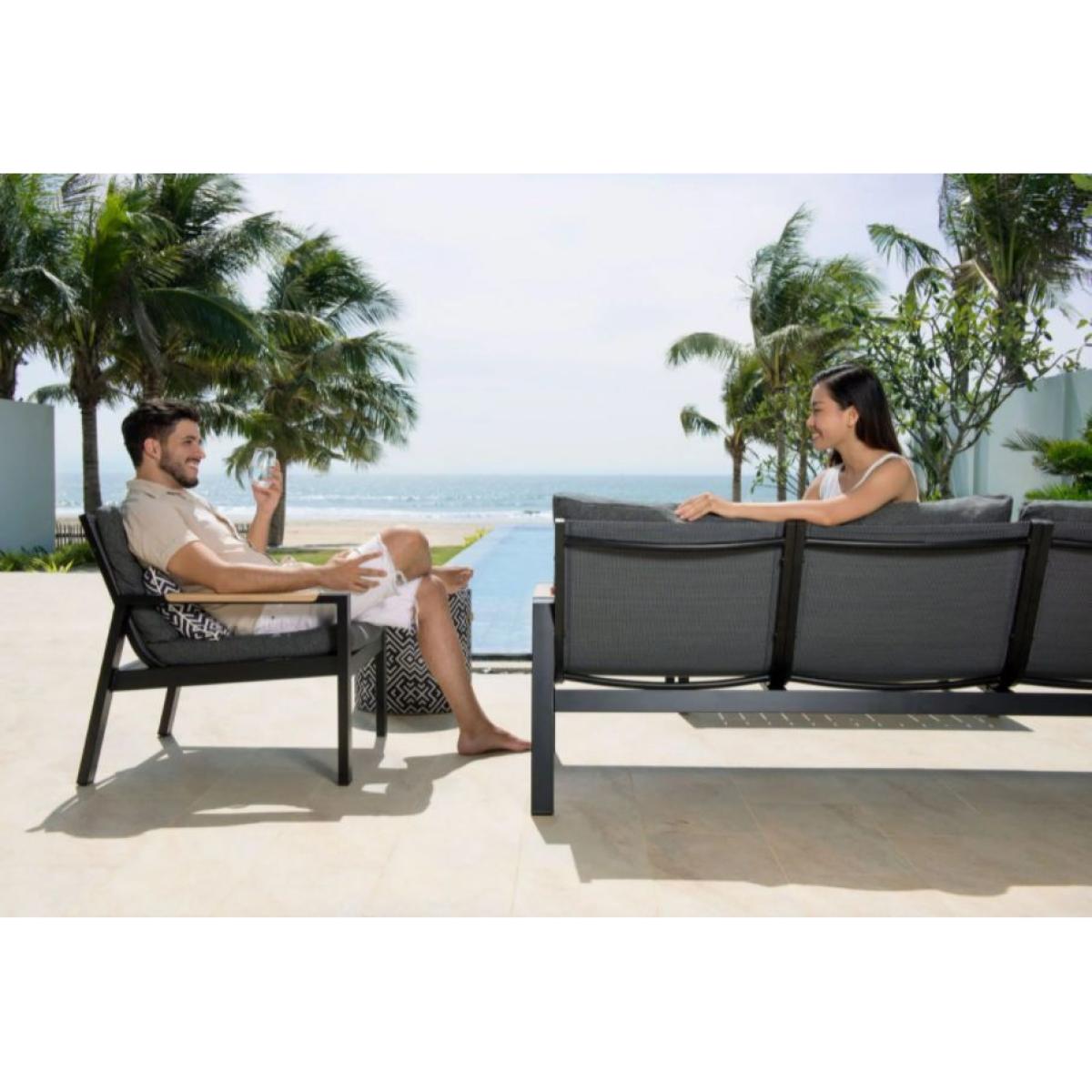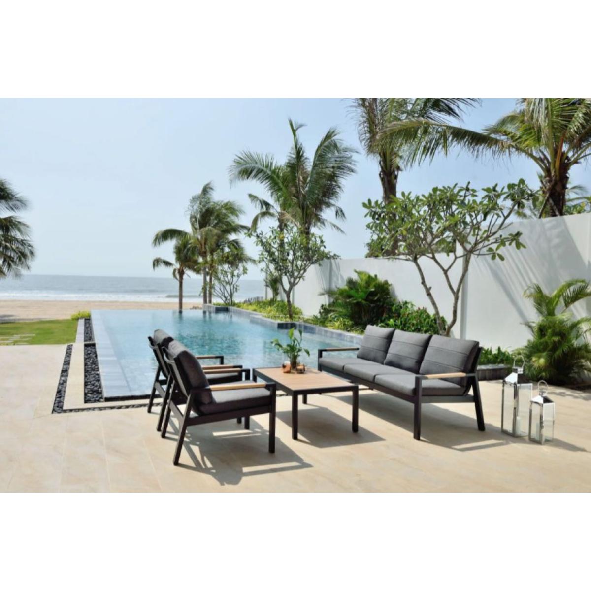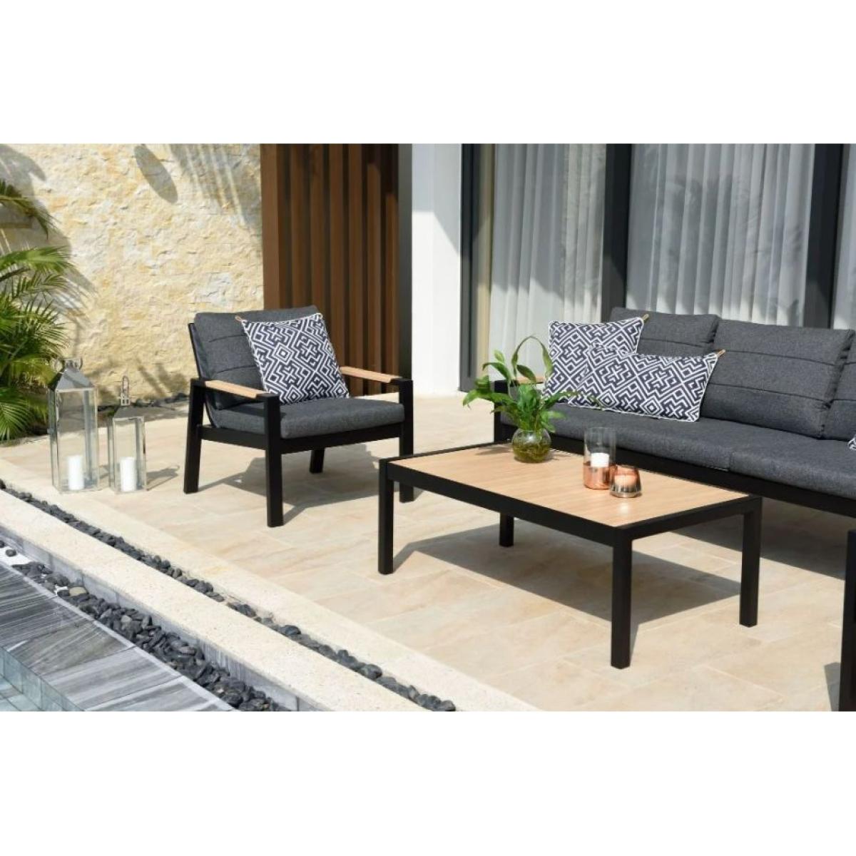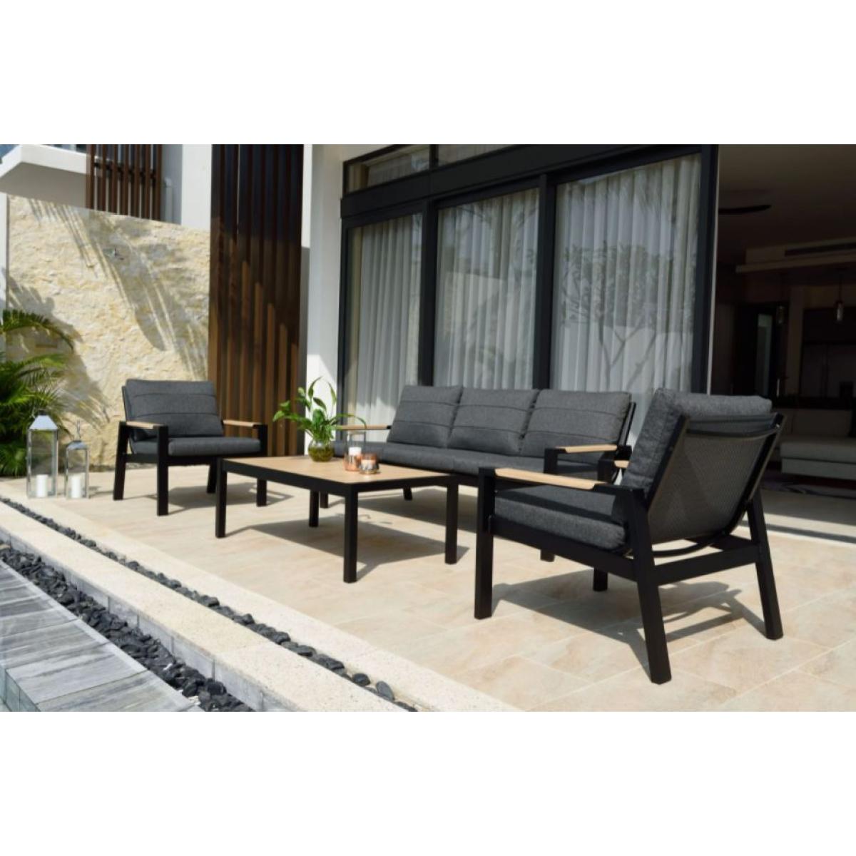 The Panama Lounge Set by Lifestyle Garden is a range characterised by contemporary design and the combination of modern materials. The sleek, minimum maintenance Aluminium set features a new finishing technology, Alu Print which gives the illusion of wood accents on the chair arms and tabletops. Alu Print is a way of printing beautiful finishes onto aluminium profiles to lift the look of the material to the next level. This adds a natural look to the metal, whilst maintaining a very low weight and high durability, adding just that extra touch to the pieces and allowing for zero maintenance and premium weather resistance. The Panama Lounge Set consists of the following: 1 x Panama 3 Seater Sofa - W 199cm x D 80cm x H 78cm 2 x Panama Sofa Chairs - W 76cm x D 80cm x H 78cm 1 x Panama Coffee Table - W 120cm x D 63cm x H 42cm. Additional Information: Minimum assembly is required This product is very low maintenance. 5 Year Manufacturers Warranty on the frame 3 Year Manufactures Warranty on the Alu Print Table Top Over time there will be signs of weathering of the Alu Print following exposure to outside elements. Fading and discolouration due to constant exposure to sunlight or natural elements and defects caused by the application of unsuitable oils or other fluids or chemicals are not covered under this limited warranty. Please ensure when not in use the product is covered and protected. Please note, all screens vary in colour reproduction and whilst every effort has been made to display the colour as accurately as possible it is for guidance only.