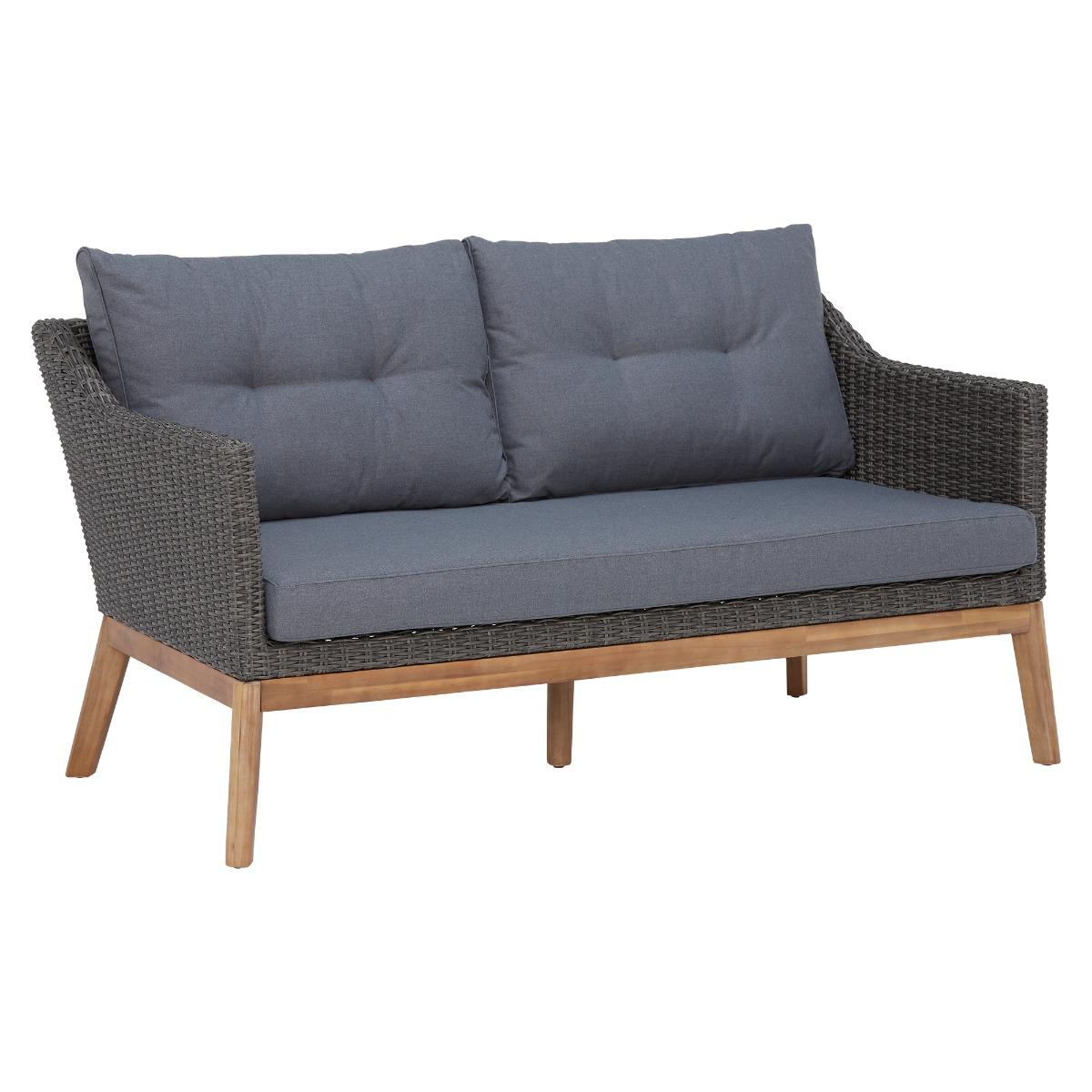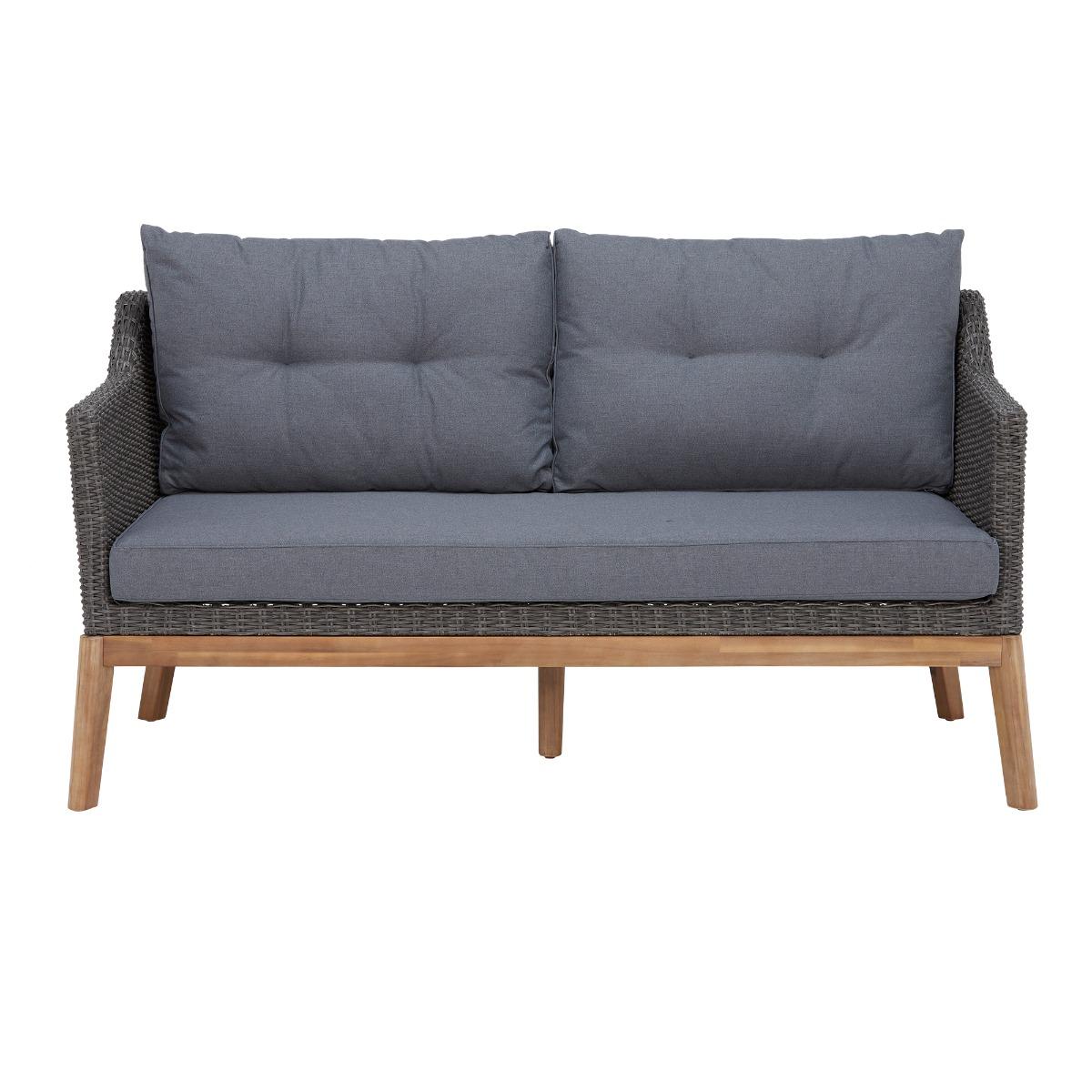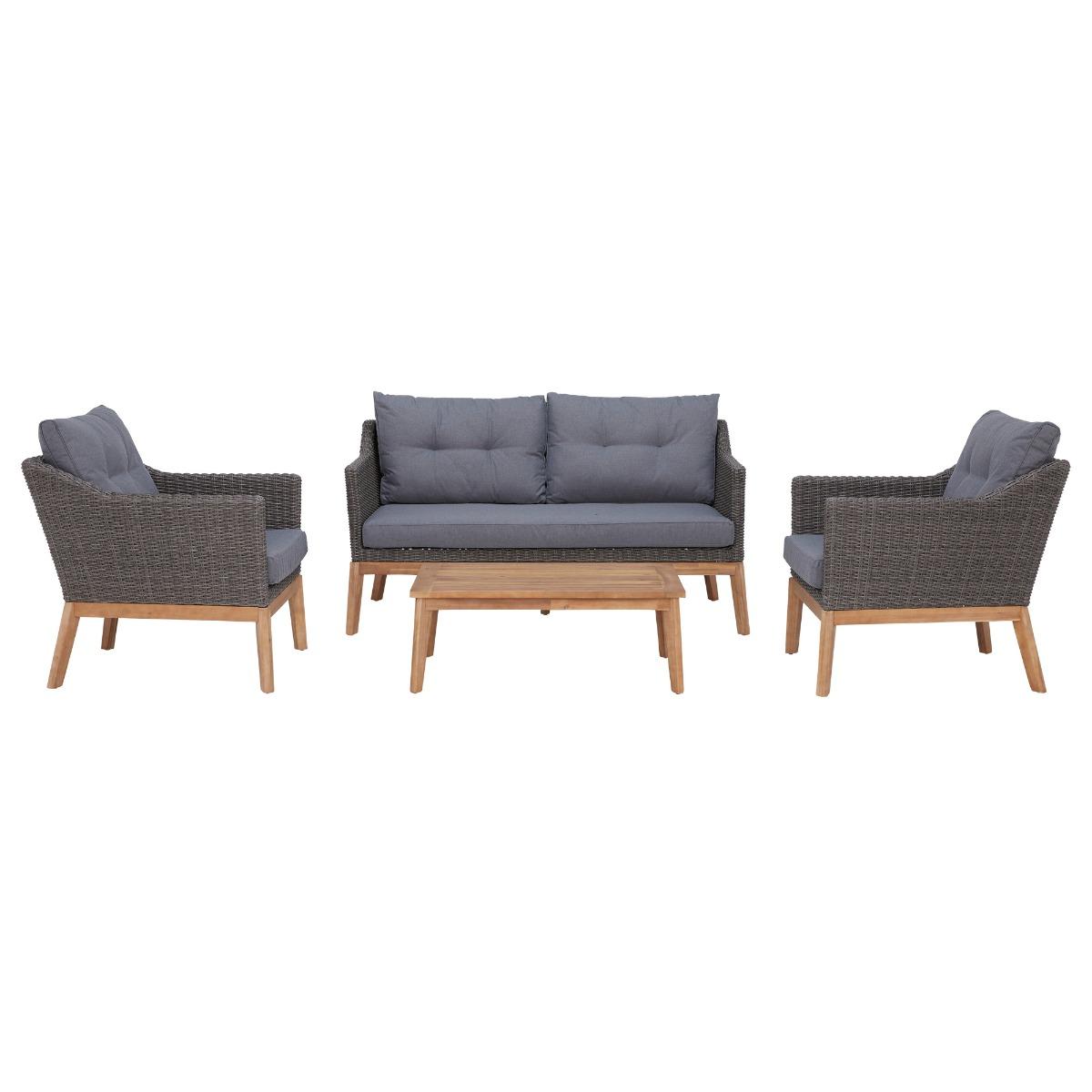 Durable and weatherproof to ensure a long-lasting, quality addition to your garden, the Panama Garden Lounge Sofa Set is not only practical it is incredibly stylish too. The unusual yet attractive combination of synthetic rattan and Acacia wood, accessorised with comfortable grey cushions and completed with a handy coffee table, adds up to the ideal space to dine al fresco.
