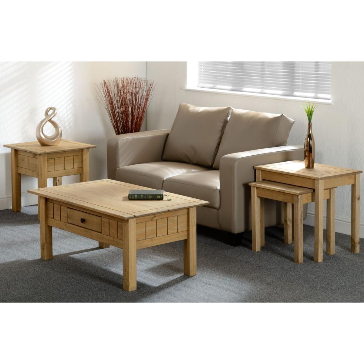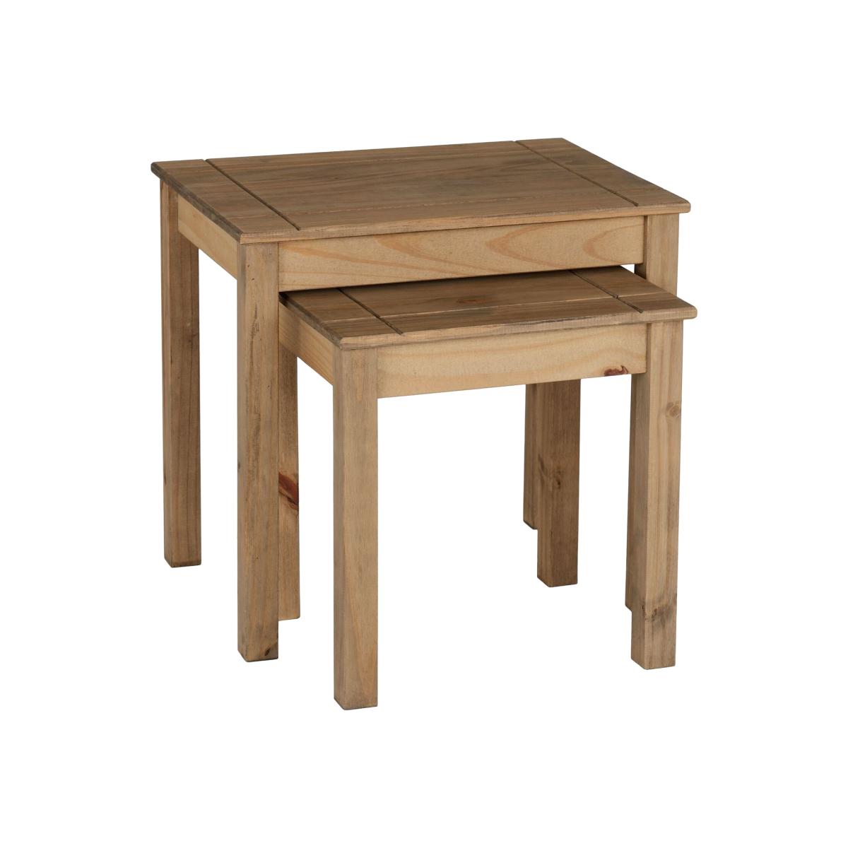 The Panama Nest Of Tables boasts both a modern and stylish design. The classic design is built using durable, solid pine with a natural oak wax finish. These tables offer practicality and stunning unique touches including carved tabletops. The Panama Nest Of Tables can be used as a display surface for decorative pieces such as photographs and ornaments or more practical items such as a lamp. UK Mainland delivery only, between 9am - 9pm (weekdays) the courier will contact you on the day of delivery to offer a time slot. This takes place within 10 working days (Ground floor only). Please also ensure that we have a note of your up-to-date address and contact information, to be passed to the couriers.