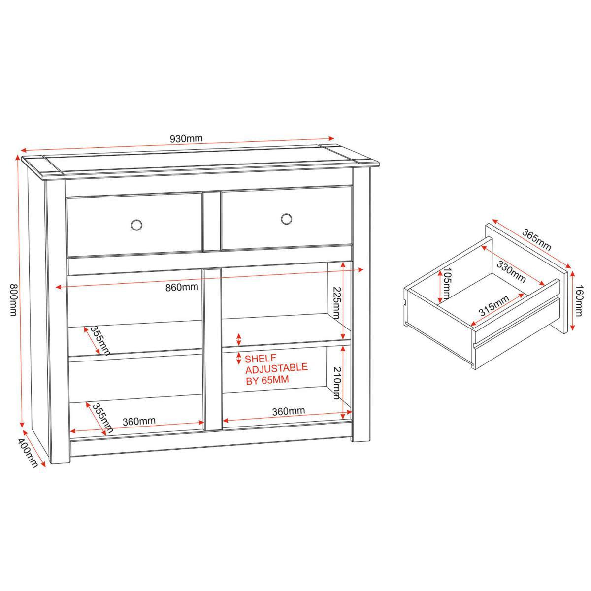 Made from solid pine with plywood back panels and drawer bases, this sideboard features two spacious drawers, storage behind the doors and metal handles. The Panama will prove to be a functional addition to your home. Please note, unfortunately we cannot deliver this item to the Channel Islands.
