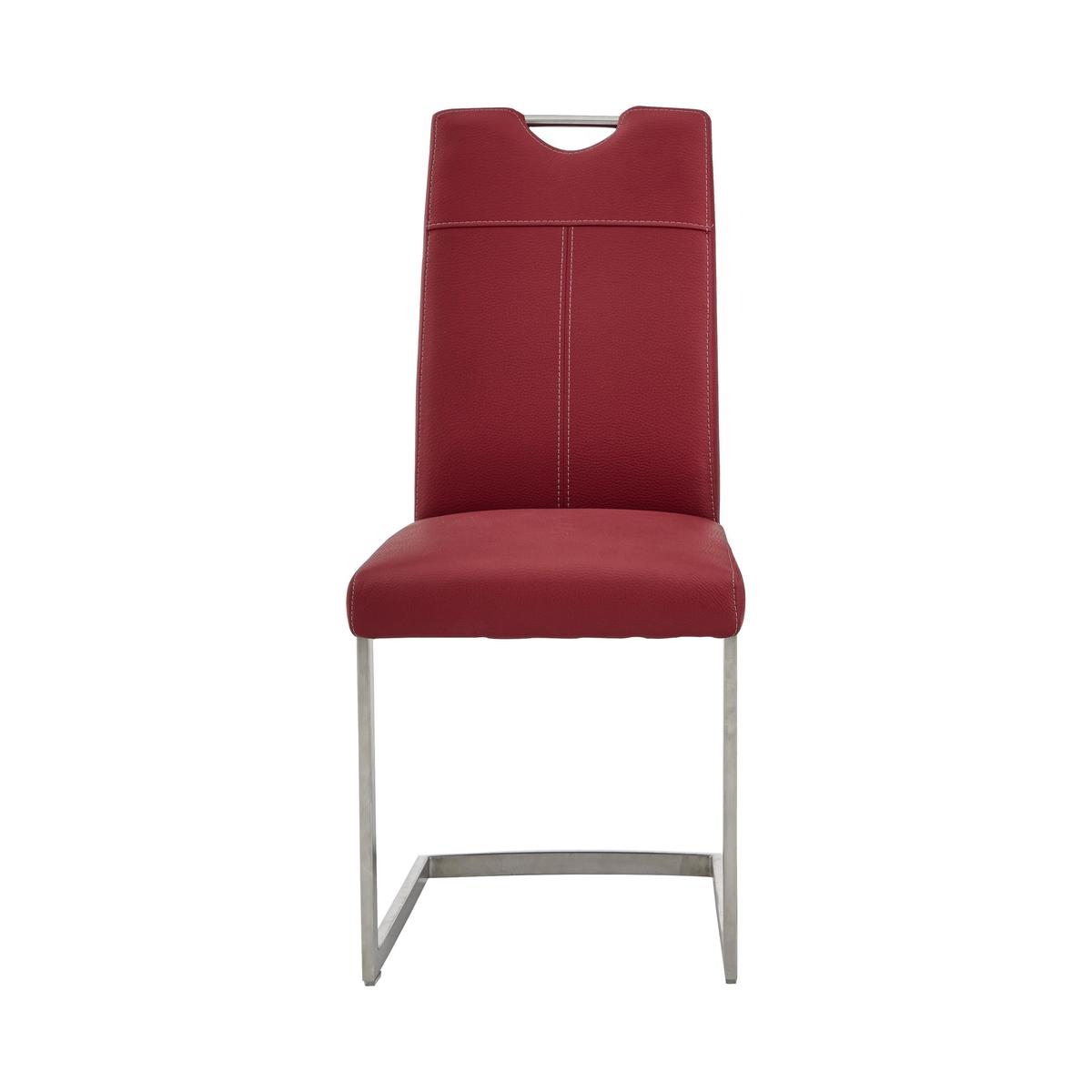 The striking Panama dining collection has a bright, high gloss white finish. A V shaped pedestal on brushed steel base gives the extending glass topped dining table its unique ultra modern style. The table to seat eight with ease. Faux leather upholstered dining chairs with brushed steel cantilevered legs and a glossy white sideboard complete the collection. Exclusively designed for Furniture Village. Faux leather upholstered dining chair. Modern design with brushed stainless steel cantilevered base. Easy to move, thanks to integral handle. Fully upholstered in faux leather with attractive feature stitching. Available in six contemporary colours – black, white, mustard, taupe, green or red. An ultra modern, ultra stylish choice.