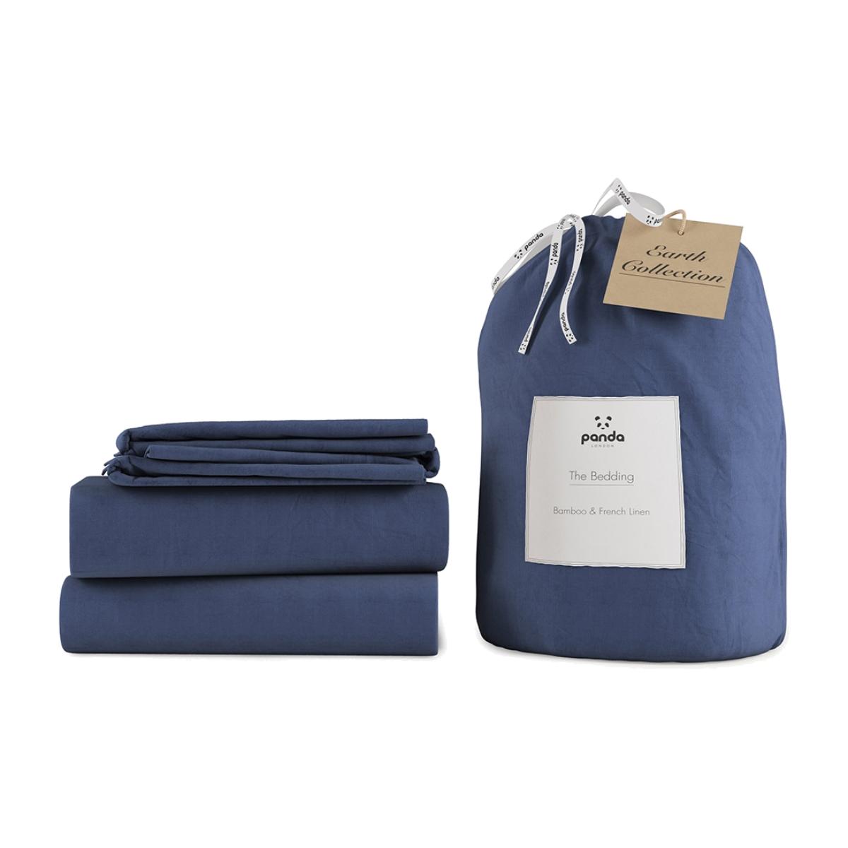 Panda London Midnight Navy Bamboo & Linen Bedding Set - SuperKing