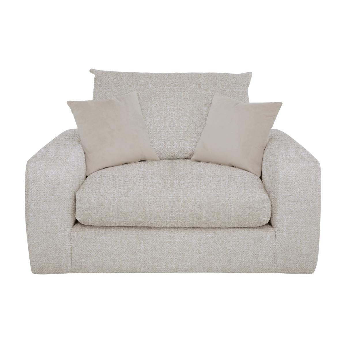Love that casual sofa look, all deep seats and super squishy cushioning? With the Boutique Pandora range, part of our Boutique Collection, you get all that and gorgeously glam sofa style too. These sophisticated sofas, corner sofas and chairs have deep sprung seats and the kind of soft cushioning that invites you to sit back and chill. Silhouettes are fashionably low, arms are comfortably wide, and the higher back cushions deliver superb head and neck support. The range is available in a range of sleek and chic upholstery fabrics that emphasise its contemporary glam style. The Boutique Pandora range handcrafted in the UK and exclusively available at Furniture Village. This gorgeous snuggler is large enough for two but why would you want to share its deep seat, incredibly soft cushioning and wide arms? Only at Furniture Village. Why you'll love it Supersized chair for one or snuggler chair for two? You decide. Glam and gorgeous meets soft and squishy. Deep sprung seat and high back for comfort with support. Comes with 2 feather-filled scatter cushions. Upholstered in a choice of fabulous fabrics. Set on glides for that contemporary floating look. Sturdy frame is made from sustainably sourced wood. Handcrafted in the UK and exclusive to Furniture Village. This snuggler is part of the Boutique Pandora range. What you need to know Soft comfort level. Seat suspension: zig-zag springs. Seat cushioning: foam. Cushion is reversible. Back support: woven elastic webbing. Back cushioning: foam. Cushion is reversible. To maintain cushion shape and fullness, be sure to plump daily. Some fabrics can show wear on areas of more use or in direct sunlight. Clean regularly using a soft brush or vacuum with the curtain attachment. Deal with any spills promptly. Professional cleaning advised for oil- and grease-based stains. Please read our upholstery care guide for more advice. Item code: PNDASNUGFOAM-001