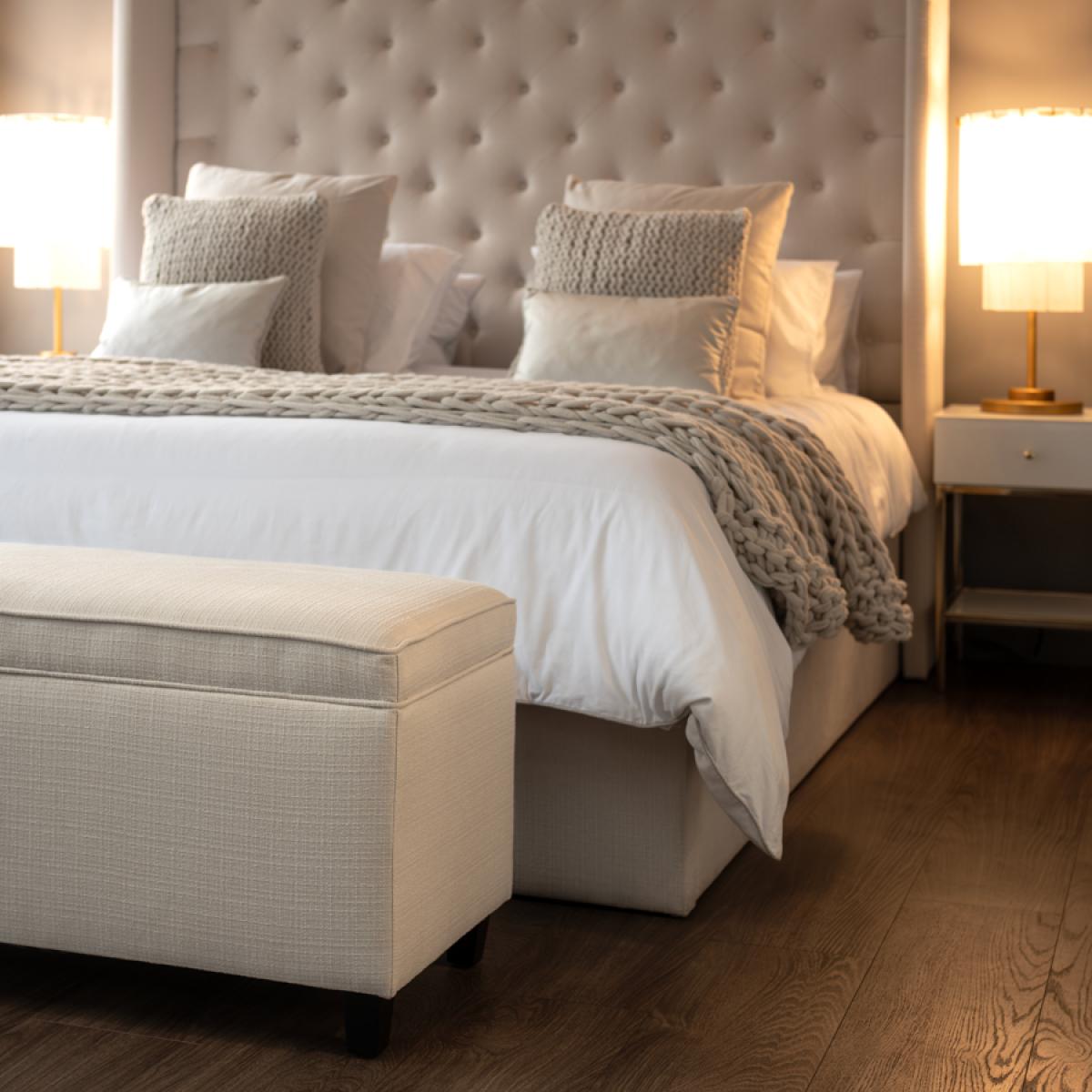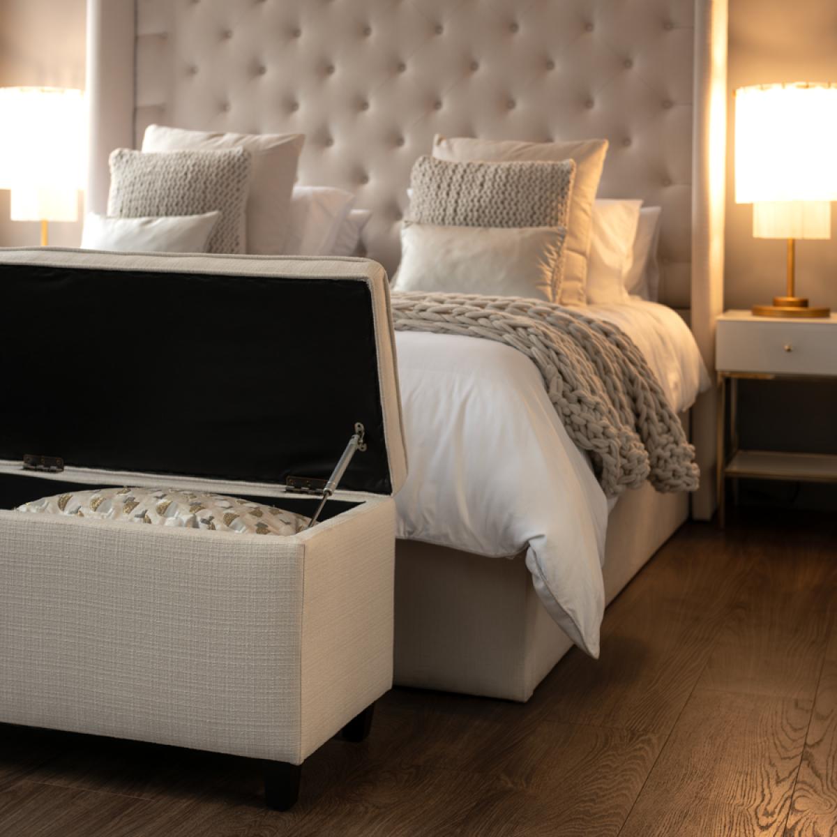 I love the Pandora storage ottoman for its versatile and timeless design, making it an easy addition to many interiors. Its neutral calico fabric provides a sophisticated look that works well in both modern and traditional settings, especially in cosy living rooms or bedroom seating areas. Practicality-wise, the storage feature adds function without sacrificing style-perfect for decluttering or storing blankets, cushions, or other essentials. To style it effectively, consider pairing it with a layered rug and complementary cushions for a cosy feel, or placing it at the foot of a contemporary sofa for a sleek, organised look. Its understated design also lends itself well to being dressed up with throws or adding a contrasting lid for a touch of interest.