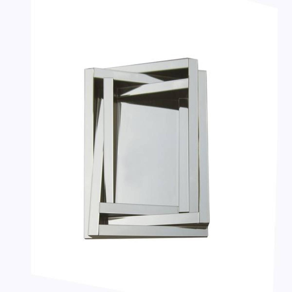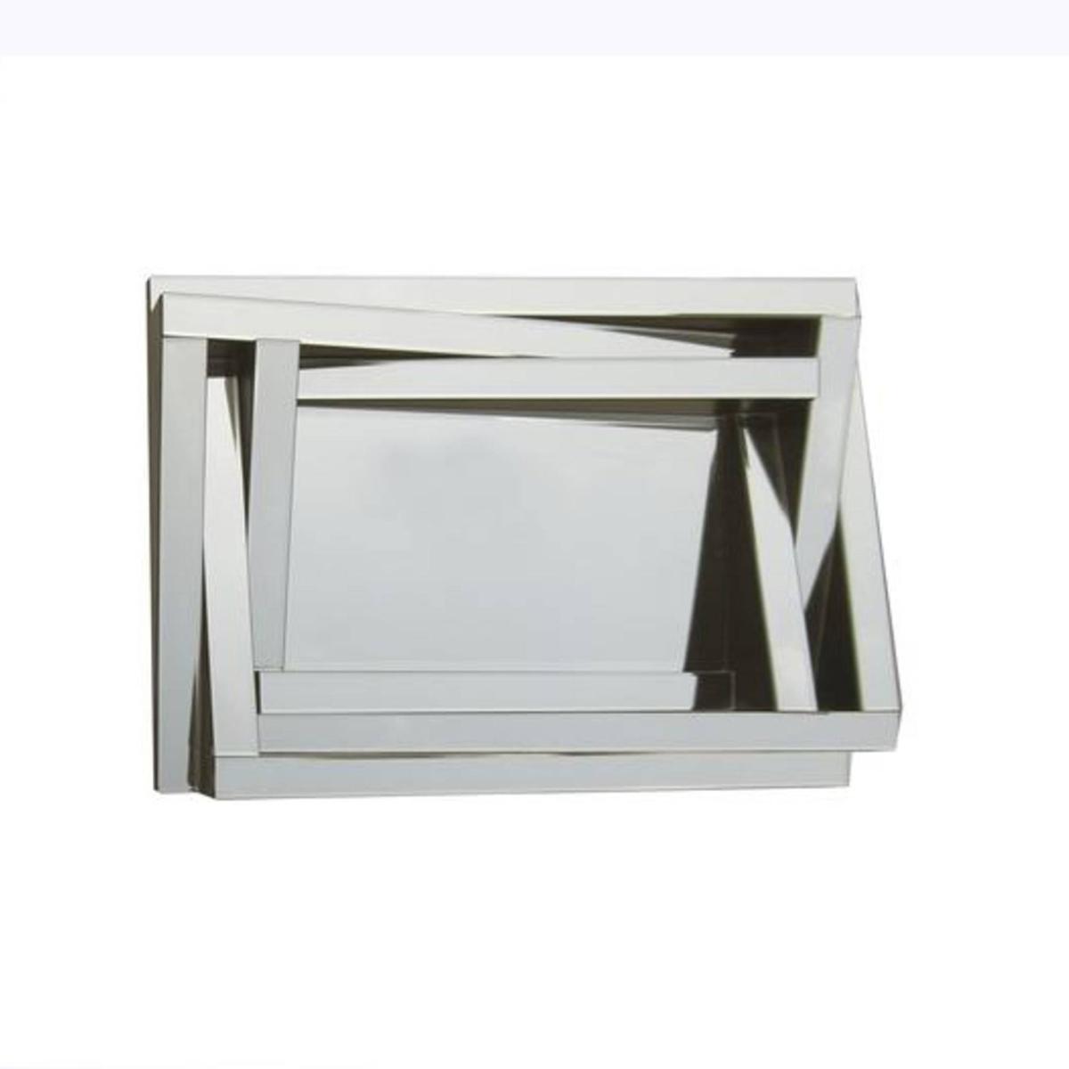 Contemporary wall mirror boasting a 3D panelled effect. Update your interiors with the fabulous 3 Bar Mirror from Pagazzi. This unique mirror has a geometric design with an eye-catching frame created by 3 mirrored bars arranged at opposite angles. This modern mirror would look great as a statement piece in hallways, living areas and bedrooms. Contemporary wall mirror boasting a 3D panelled effect. Update your interiors with the fabulous 3 Bar Mirror from Pagazzi. This unique mirror has a geometric design with an eye-catching frame created by 3 mirrored bars arranged at opposite angles. This modern mirror would look great as a statement piece in hallways, living areas and bedrooms.