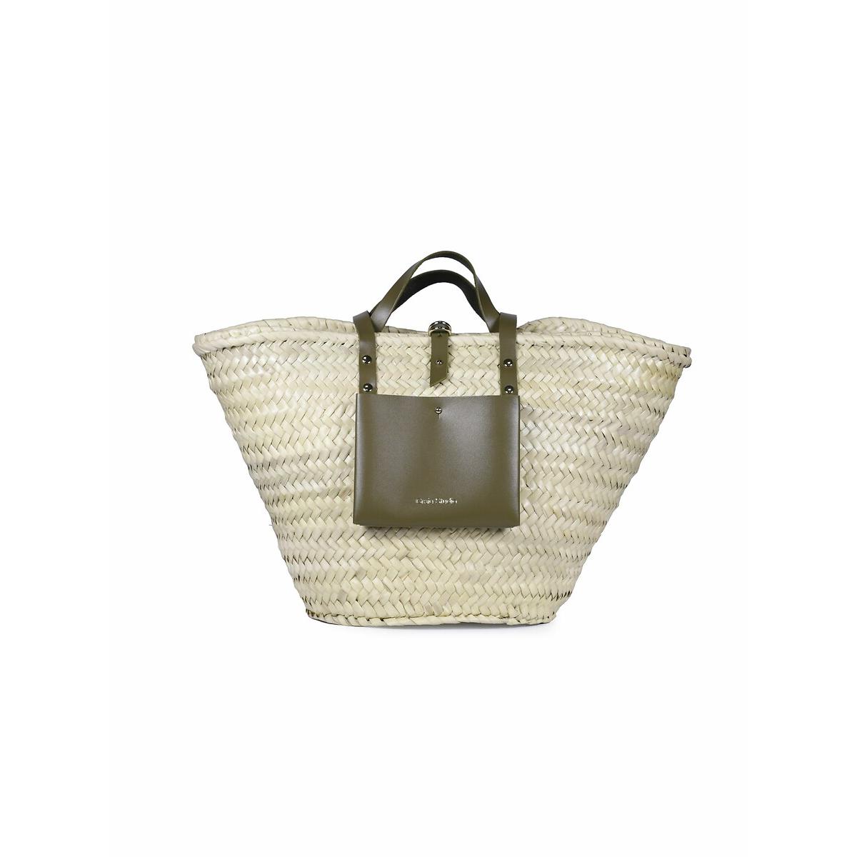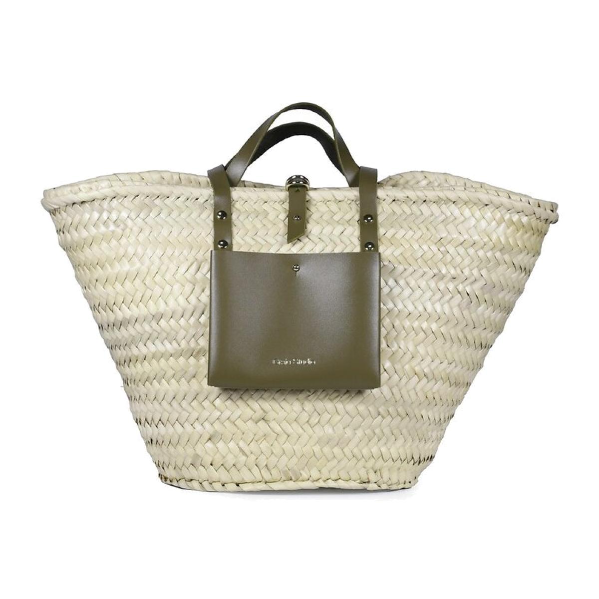 The Craie Studio basket bag in doum and suede - Panier model. The timeless basket bag gets a chic makeover with boho-inspired details and practical features. Handles and shoulder strap match the little press-stud pouch. Product details • Type of bag: tote bag • Suitable for the beach • Carry over the shoulder • Carry in your hand • Handles • Main fastening: buckle • This basket bag is hand-woven by artisans in the Fès region of Morocco from natural, undyed doum palm tree leaves. Each and every fibre is a slightly different shade of beige, with grey and green tones, giving the bag a textured look. The colour of the fibre may lighten in sunlight. It's the hand-woven aspect of this basket bag that gives it all its charm, achieving an irregular finish making each carefully selected piece unique. Handcrafted Dimensions : 38 x 26 x 13cm. Fabric content and care advice • 60% doum palm tree leaves, 40% leather • Please refer to the care instructions on the product label A little notebook stamped with the brand's logo comes free with this bag.