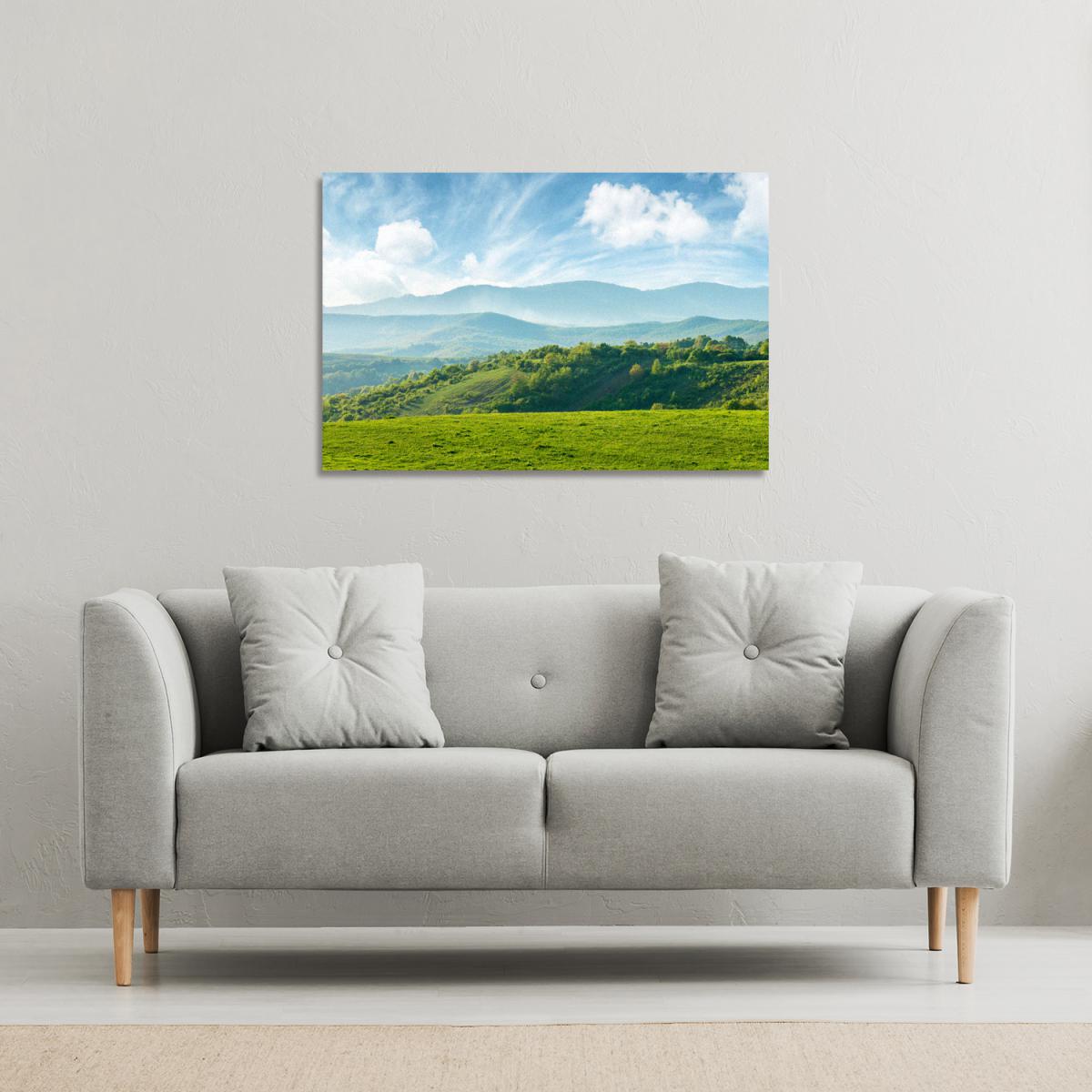 I love this canvas print of the Romanian countryside-its calming green tones and expansive landscape make it a versatile piece that can bring a touch of tranquillity to various interiors. It works particularly well in living rooms or bedrooms with a neutral colour palette, acting as a striking focal point without overwhelming the space. To style it effectively, consider pairing it with natural materials like wooden or rattan furniture, or soft textiles, to complement the earthy vibe. Hanging it at eye level and ensuring ample space around it helps it breathe in the room, making it a practical yet attractive addition to both contemporary and rustic interiors.