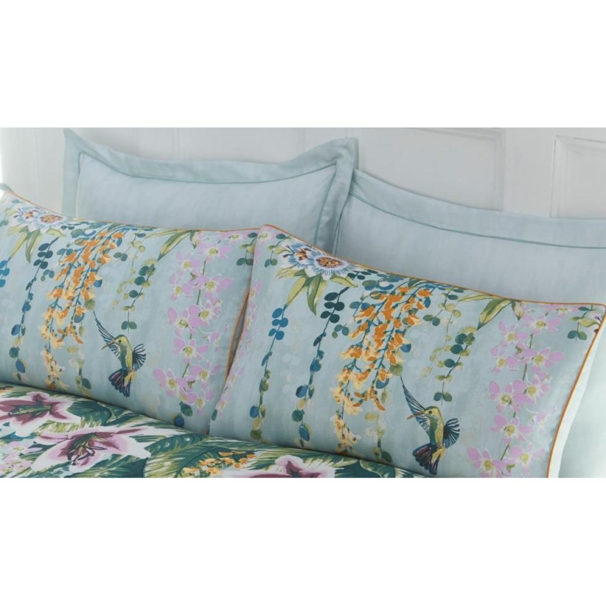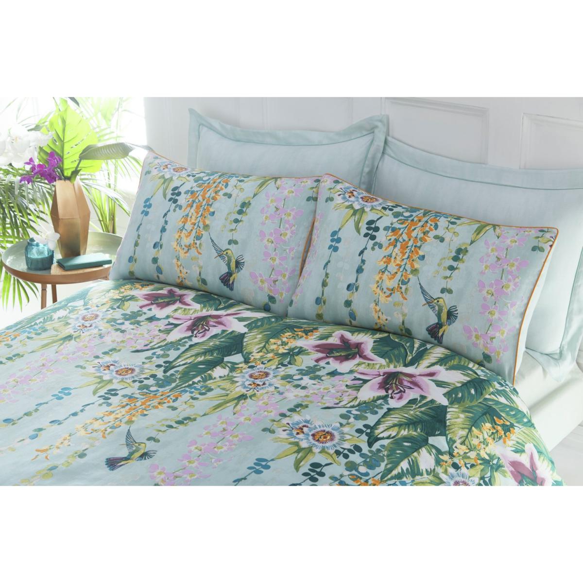 Featuring a tranquil design of delicate Hummingbirds and flowers. Complete with clear button closure for easy removal of duvet. Made using 100% Cotton, making this duvet set super soft and snuggly as well as durable and breathable. This luxury cotton sateen bedding features warm ochre piping and a relaxing textured print on the duvet cover reverse. Finish: sateen. 100% cotton. 200 thread count. Set includes 1 duvet cover and 2 pillowcases. Bed size: super king. Length 220cm, Width 260cm. Piped edging detail. Buttons for fastening. Standard pillowcase (s). Pillow case length 75cm, Width 50cm. Machine washable. Suitable for tumble drying.