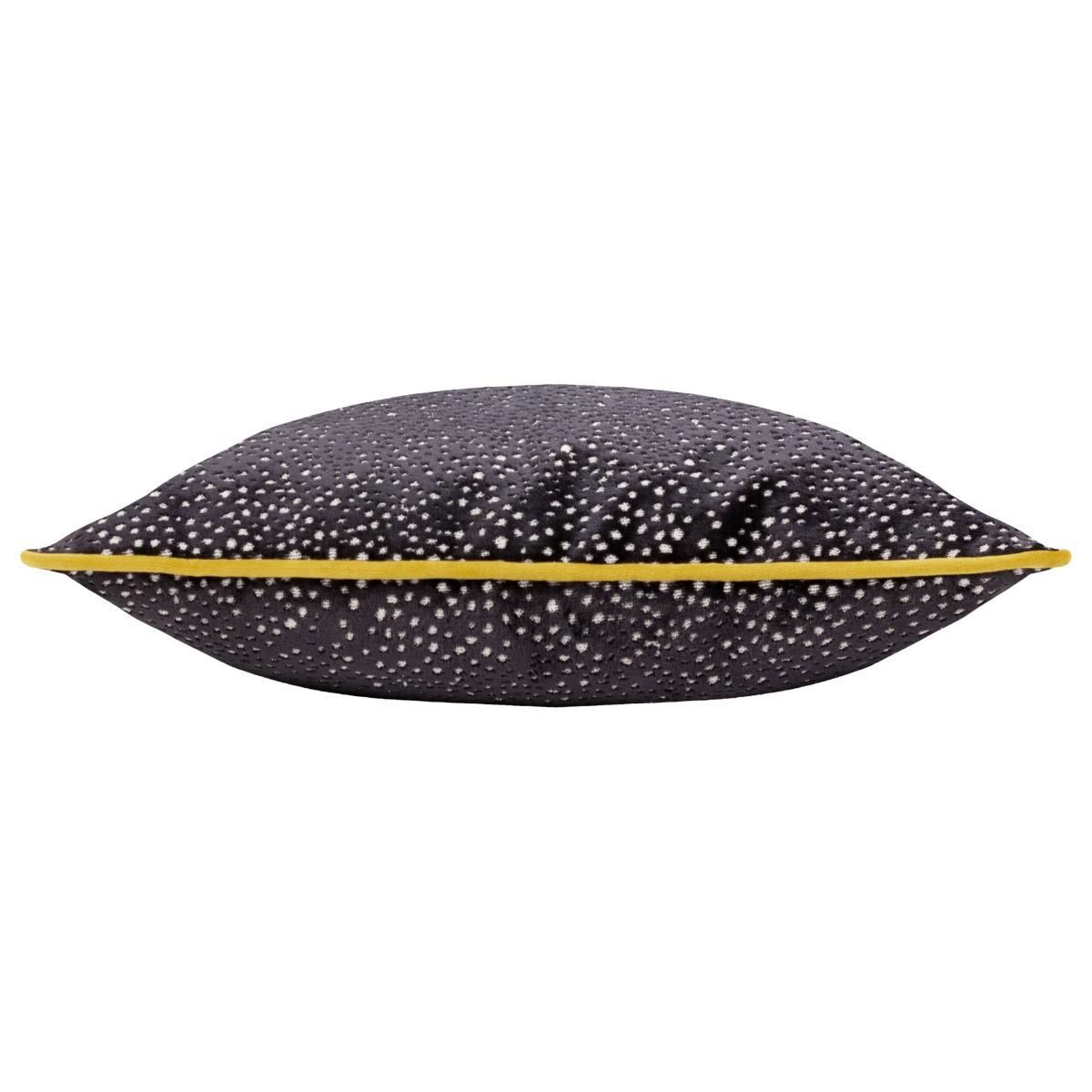 * Square shaped * Textured look * Velvet feel * Made from polyester Experience ultimate comfort and style with the Paoletti Estelle Square Velvet Cushion. Featuring a plush spotted cut velvet design, this cushion offers a sophisticated yet cosy addition to any space. The contrast-colored piped trim adds a striking touch, while the reversible design provides flexibility in styling. Made from 100% polyester, it is both ultra-soft and long-lasting. With a secure zip fastening, this cushion combines elegance with practicality, making it the perfect accent piece for your sofa or bed.