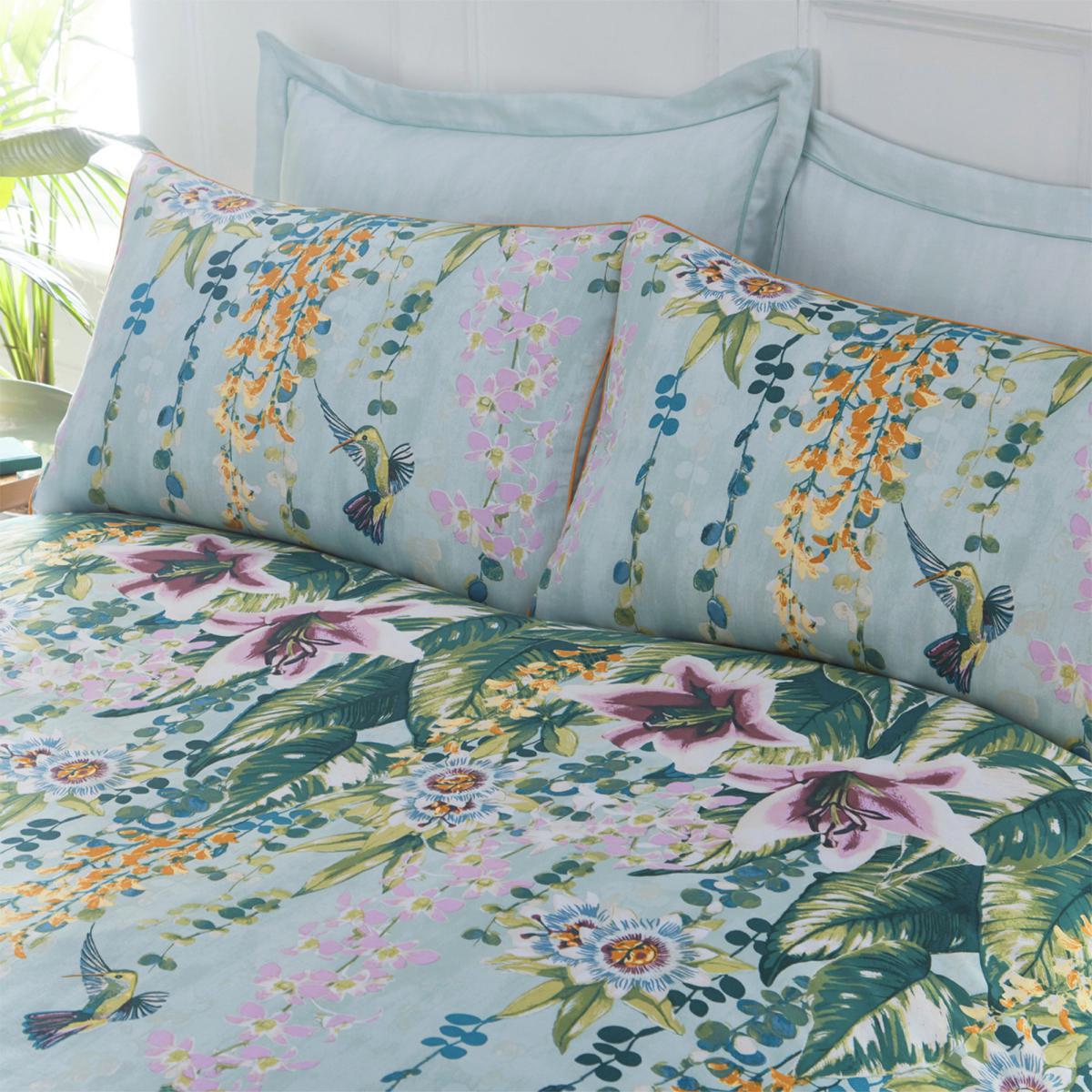 Paoletti Hanging Gardens Reversible 100% Cotton Duvet Cover and Pillowcase Set Green, Yellow and Pink