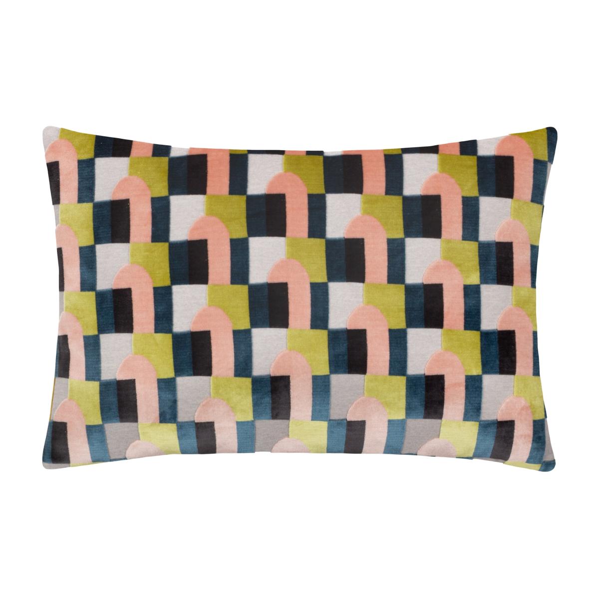 * Geometric cut-velvet design in jewel tones. * Velvet reverse, hidden zip. * 100% polyester fabric. * Zip Fastening* Polyester fibre filling This Paoletti Keela Rectangle Cushion showcases a plush, geometric cut-velvet design in vivid jewel tones. With a soft velvet reverse and standard knife edging, the cushion is made from durable and super soft 100% polyester fabric.
