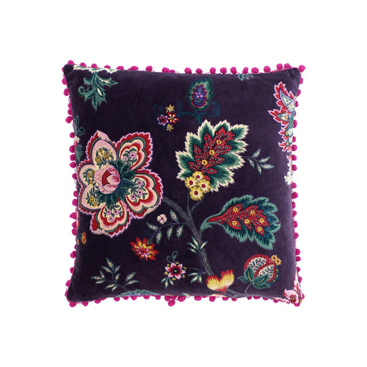 Featuring a beautiful Indian inspired floral print, this stylish cushion is ideal for adding a touch of style to your home. The removable cover is crafted from a 100% cotton faux velvet fabric for a smooth and soft touch and features contrasting pom pom detailing for a sophisticated finish. Filled with plump and durable polyester for lasting comfort, this luxurious cushion is the perfect mix of style and substance.