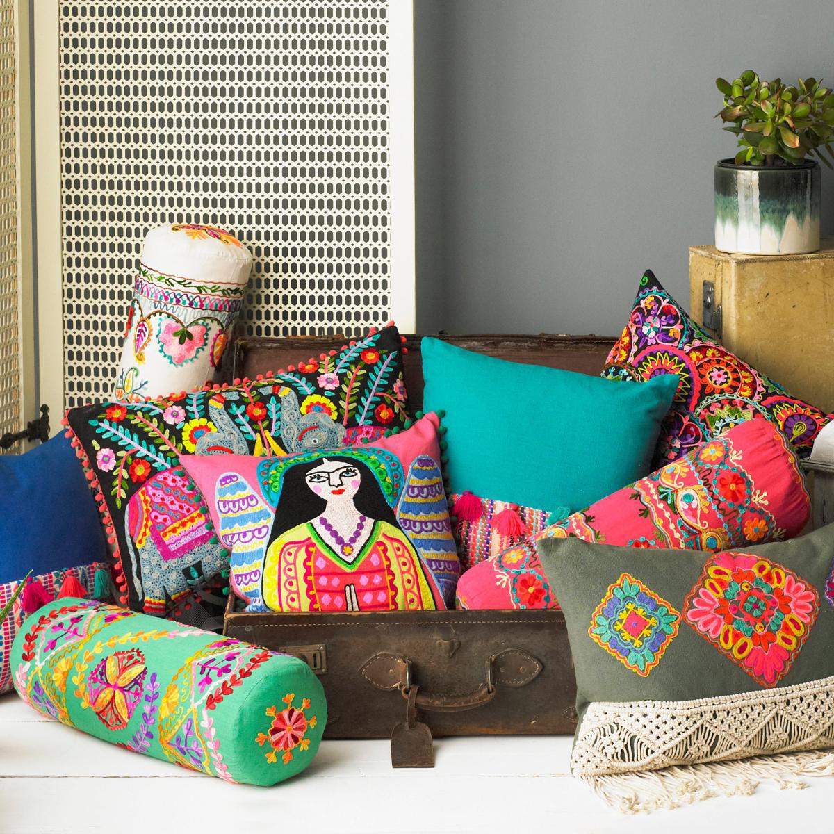 I love this cushion for its rich velvet texture and vibrant floral embroidery, which add both colour and tactile interest to a space. It works particularly well in eclectic or bohemian interiors, but can also bring a luxe touch to more neutral schemes. The mink base offers a sophisticated backdrop that makes the embroidery pop without overwhelming the room. For styling tips, try pairing it with simple linen or cotton cushions to balance its opulence, or use it as a statement piece on a velvet sofa for a cohesive, plush look. Its decorative flair makes it versatile enough to dress up a bed, a statement armchair, or a cosy window seat.