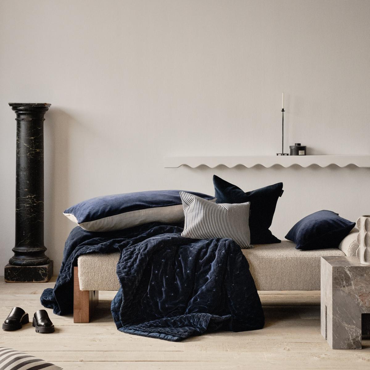 The PAOLO cushion cover in the colour ink blue is a classic LINUM design that has seen great success both at home and abroad. A big part of the design's popularity is due to its versatility, being an item that can grace both bedrooms and living rooms. Many are impressed by its luxurious look and soft feel, which also make it a popular choice for children’s bedrooms and guest rooms. The 50x50 cm cushion cover has 100% cotton velvet on both the front and back. The PAOLO collection includes three types of cushion covers, a classic square measuring 50x50 cm, a 50x90 cm cushion specially designed for beds, and a 40x60 cm cushion cover for both the living room and the bedroom.