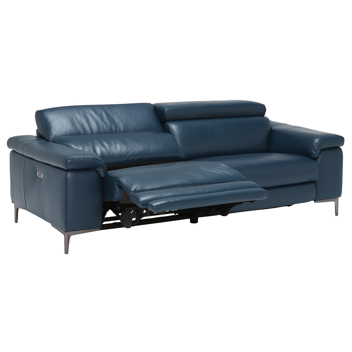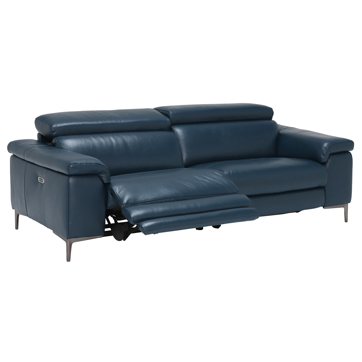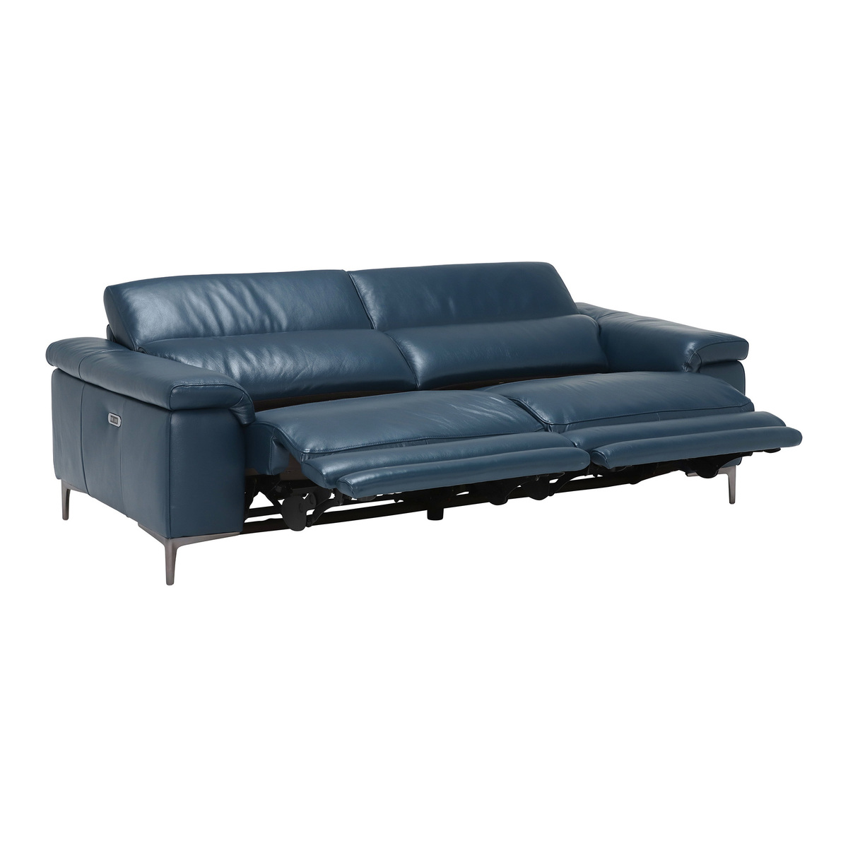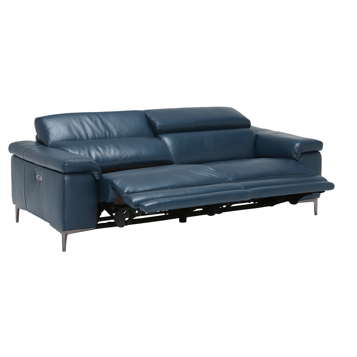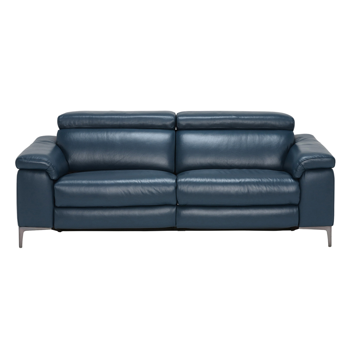 Design. The 2 Seater Paolo Recliner Sofa offers the ultimate comfort and style, from the supple premium Leathers and relaxing reclining motions, the Paolo makes a fantastic addition to your living space. The sleek design offers a modern yet classic feel, with clean lines and contemporary feet, in Melbourne Navy Blue which will match many interior settings.