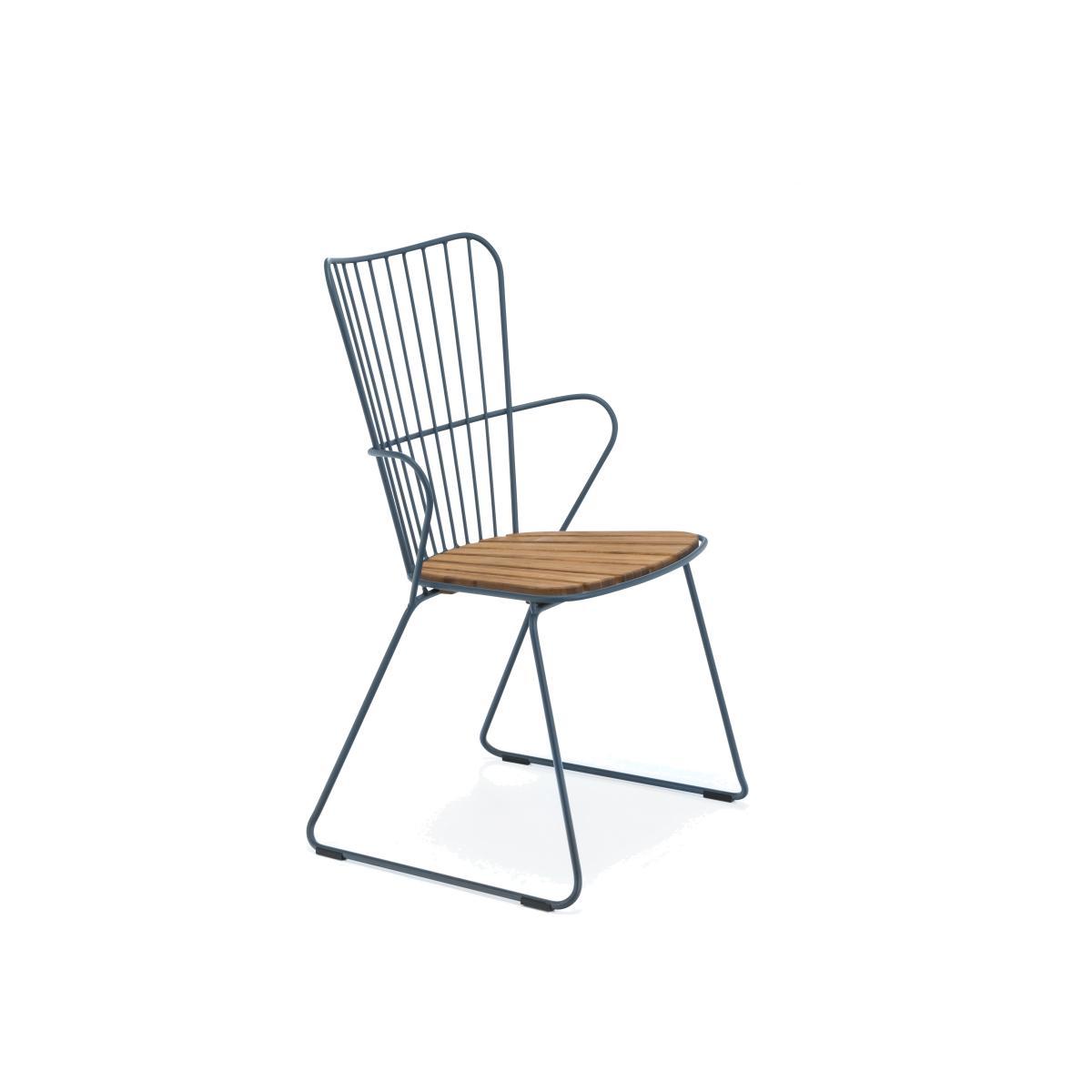 Created by Danish designer Henrik Pedersen, the Paon collection stands out for its graphic design and incredible visual lightness. Very durable, Paon seats can be used indoors or out. They stand out for their high backrests, which are both enveloping and comfortable. This high backrest made of vertical spindles is a modern evocation of the traditional Windsor armchair. The vertical spindles are crossed by the horizontal line of the armrests: this graphic sign confirms the identity of the collection. Paon uses a beautiful combination of materials: a very fine metal structure associated with a seat made of natural bamboo slats, a robust and warm material. The Paon collection is perfect for creating a modern outdoor lounge with Scandinavian accents, or a nice dining area, on a terrace or in a kitchen. For greater comfort, you can embellish the seat with an elegant charcoal-grey cushion sold separately.