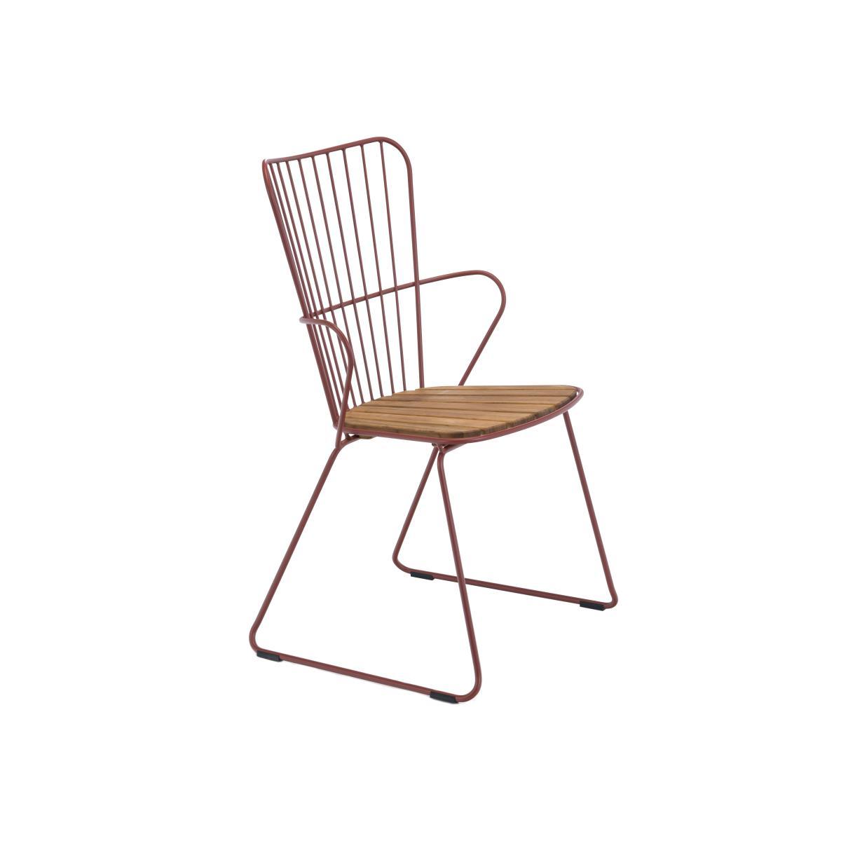 Created by Danish designer Henrik Pedersen, the Paon collection stands out for its graphic design and incredible visual lightness. Very durable, Paon seats can be used indoors or out. They stand out for their high backrests, which are both enveloping and comfortable. This high backrest made of vertical spindles is a modern evocation of the traditional Windsor armchair. The vertical spindles are crossed by the horizontal line of the armrests: this graphic sign confirms the identity of the collection. Paon uses a beautiful combination of materials: a very fine metal structure associated with a seat made of natural bamboo slats, a robust and warm material. The Paon collection is perfect for creating a modern outdoor lounge with Scandinavian accents, or a nice dining area, on a terrace or in a kitchen. For greater comfort, you can embellish the seat with an elegant charcoal-grey cushion sold separately.