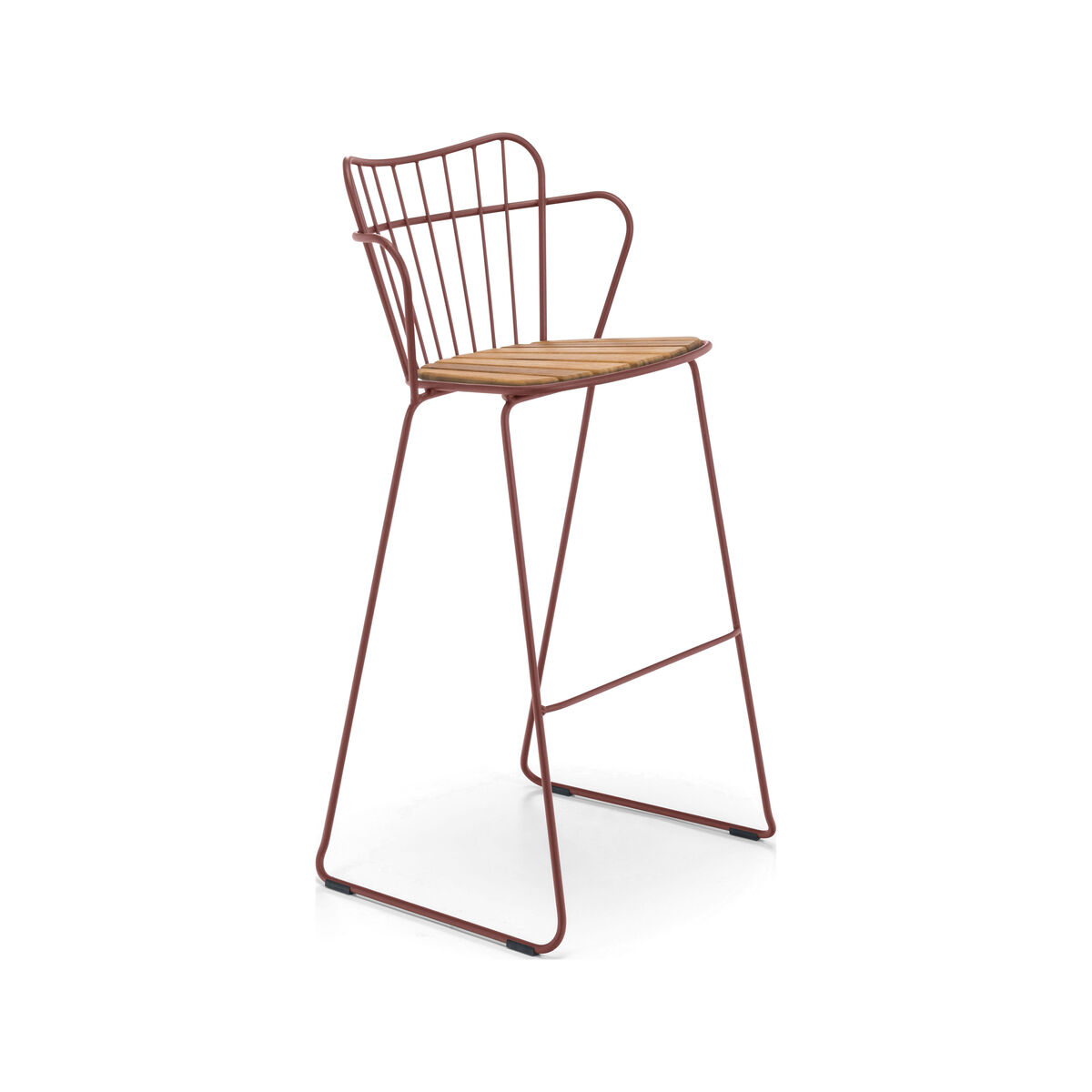 Created by Danish designer Henrik Pedersen, the Paon collection stands out for its graphic design and incredible visual lightness. Very durable, Paon seats can be used indoors or out. They stand out for their high backrests, which are both enveloping and comfortable. This high backrest made of vertical spindles is a modern evocation of the traditional Windsor armchair. The vertical spindles are crossed by the horizontal line of the armrests: this graphic sign confirms the identity of the collection. Paon uses a beautiful combination of materials: a very fine metal structure associated with a seat made of natural bamboo slats, a robust and warm material. The Paon collection is perfect for creating a modern outdoor lounge with Scandinavian accents, or a nice dining area, on a terrace or in a kitchen.