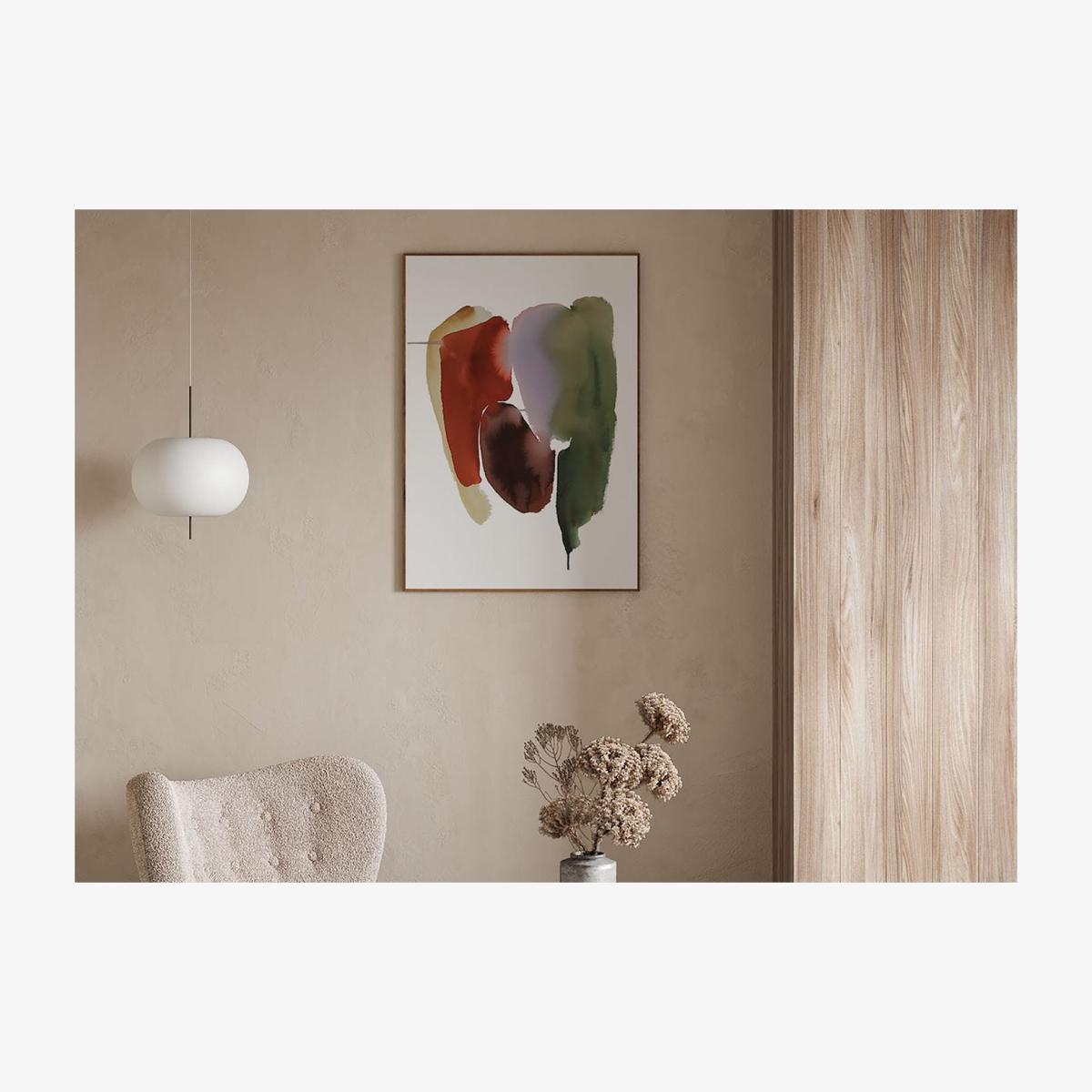 I love how the Blemish 01 print adds a contemporary touch with its bold, abstract design. It works particularly well in minimalistic or Scandinavian interiors where it can act as a statement piece without overwhelming the space. To style it effectively, consider placing it above a neutral sofa or on a feature wall with other understated art or textured wall treatments. Practical tips include pairing it with simple, clean-lined frames and avoiding clutter around it to let the artwork truly stand out. Its versatile colour palette means it can blend seamlessly into both warm and cool-toned interiors, making it a great addition to a variety of schemes.