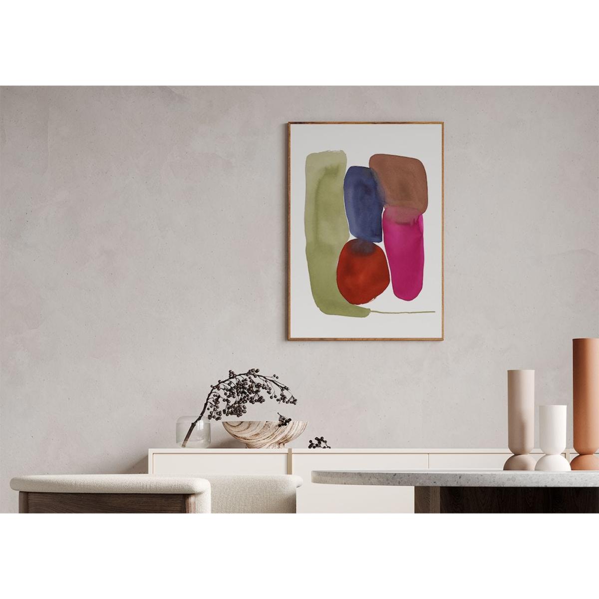 I love this print for its modern abstract aesthetic-its playful colours and monochrome tones make it a versatile piece that can brighten a variety of interiors. It works particularly well in contemporary or minimalistic settings, where it can serve as a focal point on a neutral wall. Practical styling tips include pairing it with simple, understated furniture to let the artwork stand out or creating a curated gallery wall with other abstract pieces for visual interest. In smaller rooms, it can also add depth and personality without overwhelming the space. The 50 x 70cm size makes it adaptable to both larger wall spaces and spots above furnishings, like a sideboard or console.