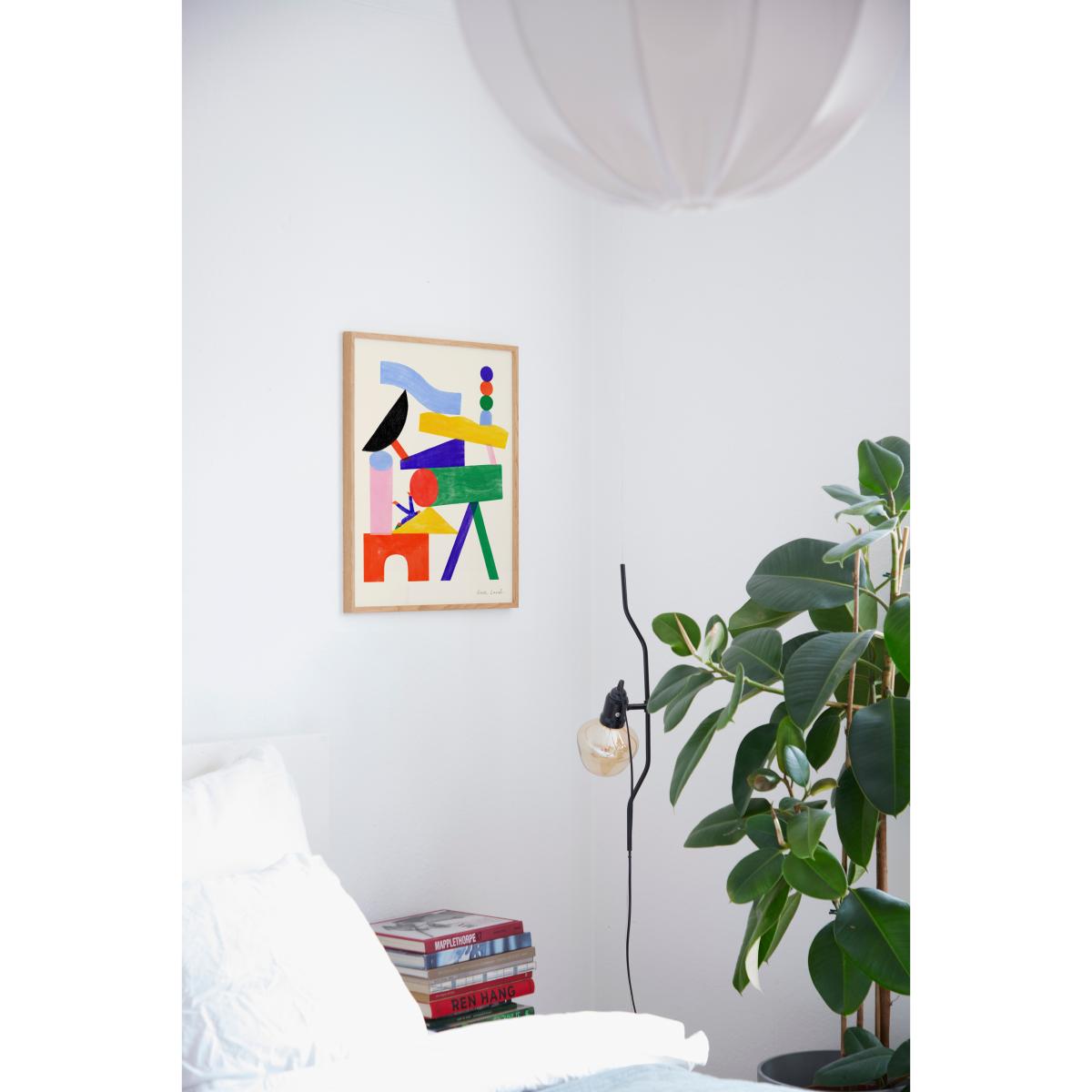 I really like this print for its modern, playful vibe-it's a great way to add colour and energy to a variety of interiors. It works especially well in contemporary or minimalist spaces where a pop of artistic flair is needed to soften clean lines. Practical styling tips include pairing it with simple framing for a polished look, and hanging it at eye level as a focal point. It can be styled above a sofa or bed, or in a gallery wall with other artworks for a lively, curated feel. Because of its bold colours and abstract shapes, it’s versatile enough to complement both neutral tones and more colourful, eclectic schemes.