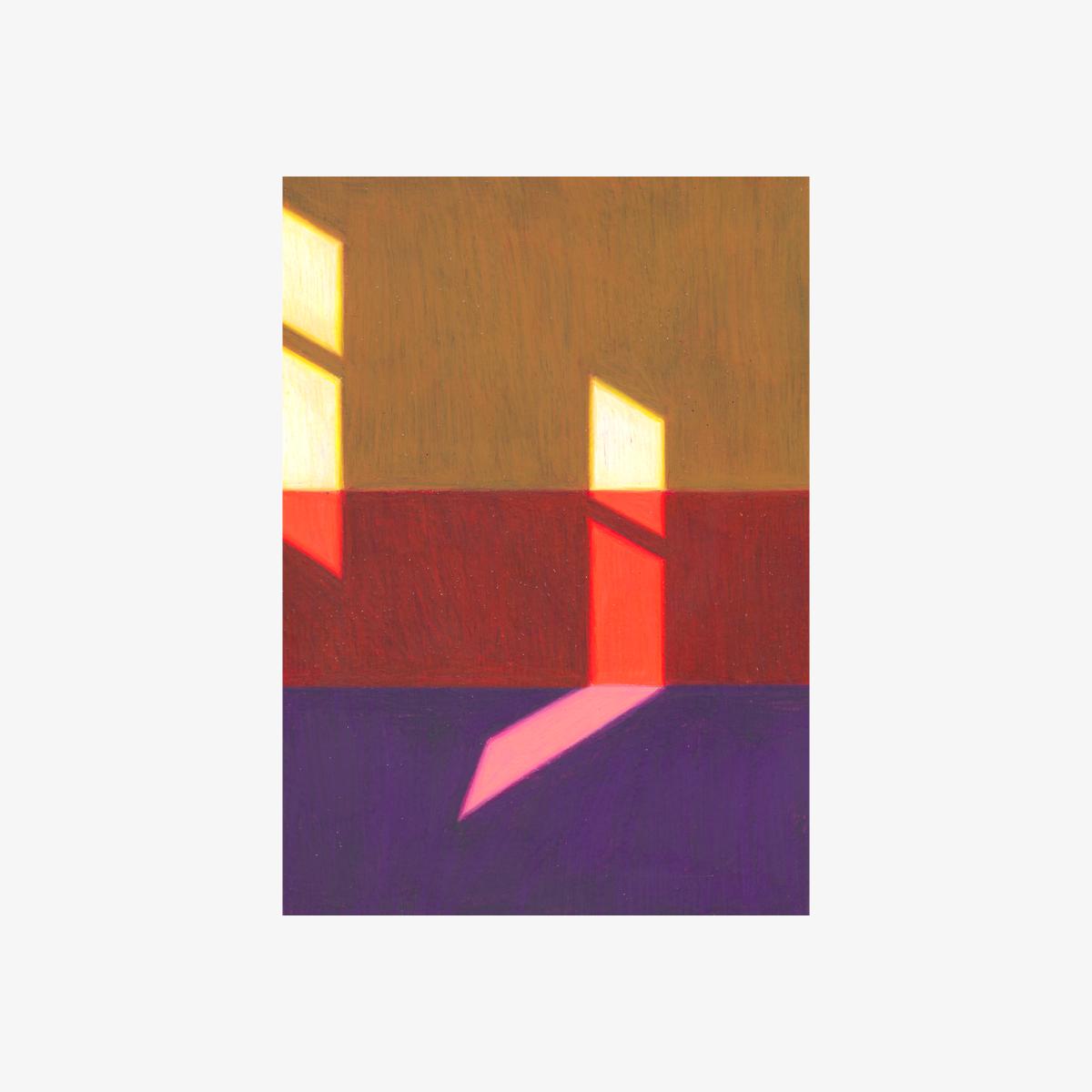 The Les Vacances 02 poster from Paper Collective, designed by Ana Popescu, recreates the feeling of late summer evenings in Vienna. The light streaming through the window highlights the vibrant shades of purple, red, and yellow, created with wax pastel. Printed on 100% paper, this poster becomes a stylish detail that suits both alone and as part of an artistic gallery wall.