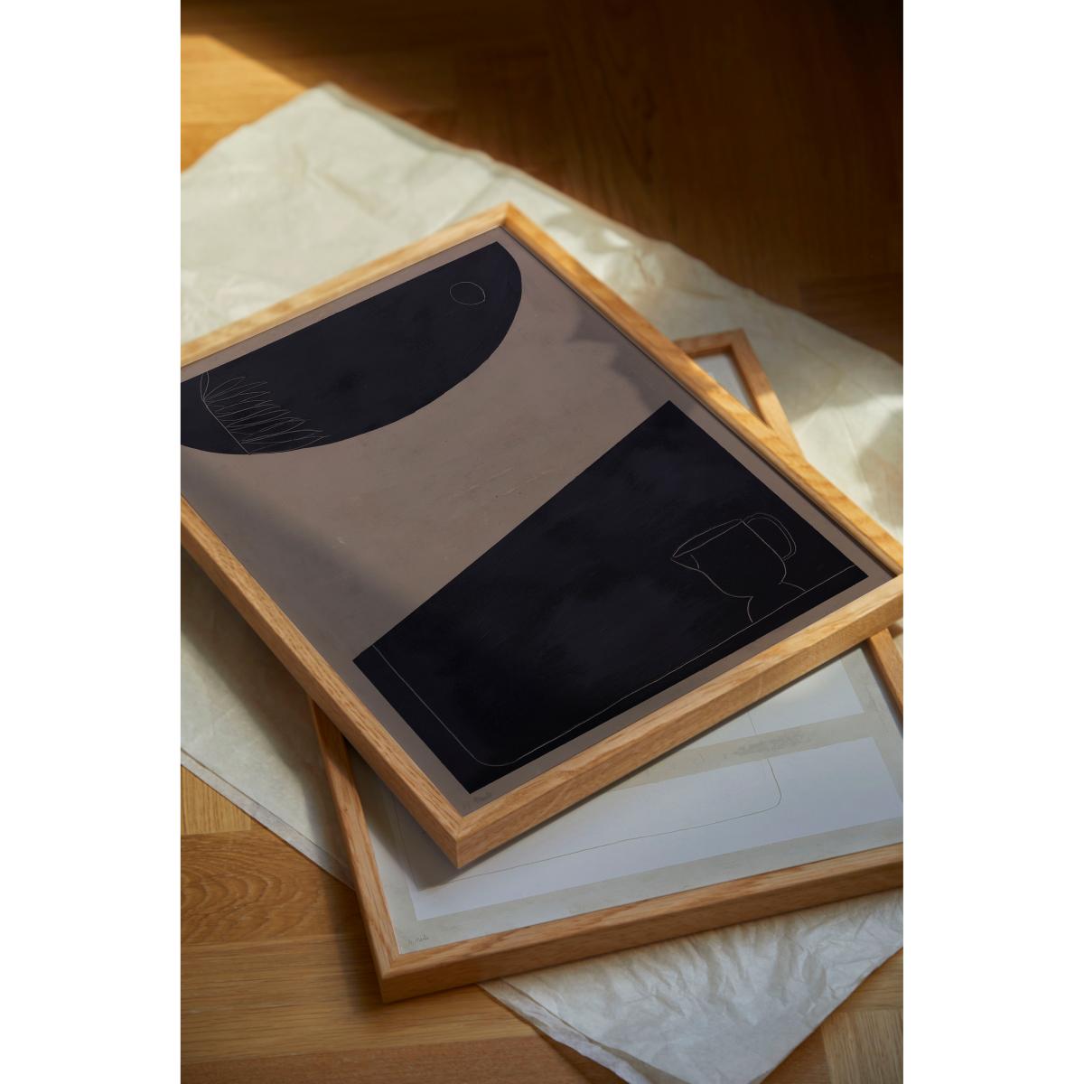 I really like this piece because of its minimal, yet intriguing, design. It works well in contemporary or Scandinavian interiors where clean lines and muted tones are key. The simplicity of the shapes and colours makes it versatile enough to hang in living spaces, hallways, or bedrooms without overwhelming the decor. For styling, consider pairing it with other understated artworks or placing it above a neutral sofa or sideboard to create a focal point. To keep the look fresh, opt for a slim black or white frame and hang it at eye level for maximum impact. It’s a subtle statement, perfect for adding visual interest without clutter.