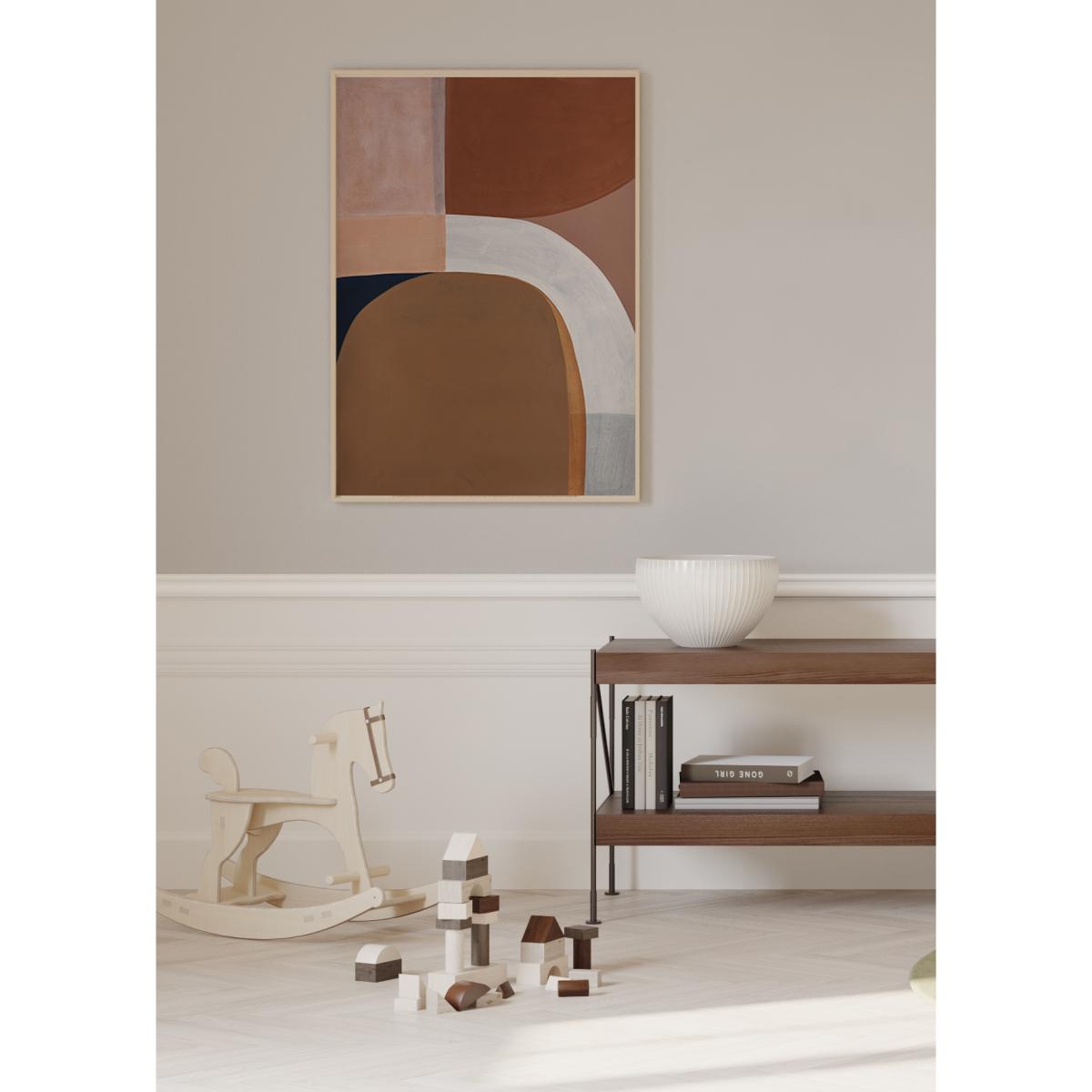 I really like this printed shapes poster for its understated elegance and versatile colour palette. It works particularly well in minimalist or Scandinavian-inspired interiors, where its simple forms and muted tones can add visual interest without overwhelming the space. To style it effectively, consider pairing it with natural materials like wood or linen, and hang it at eye level to create a focal point in living rooms or bedrooms. For a more contemporary look, you can also group it with other artworks or prints in similar tones for a curated gallery wall. Its size is just right to make a statement without dominating, making it a practical choice for various space sizes.