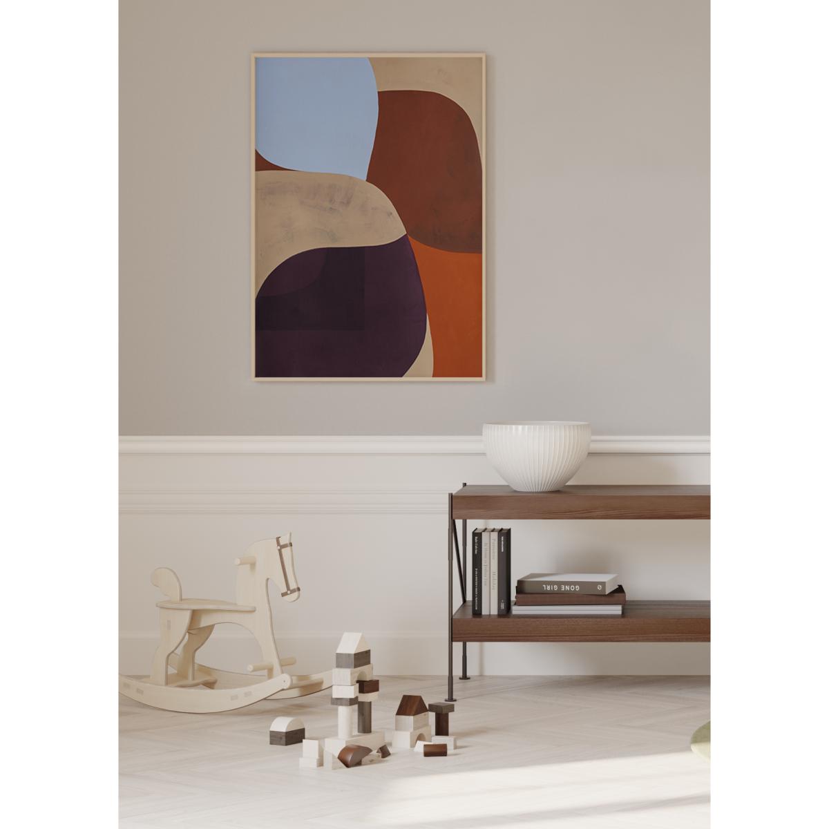 I love this poster for its bold, abstract shapes and muted earthy palette, which makes it versatile for various interior styles. It works particularly well in contemporary, minimal, or Scandinavian schemes where the artwork can provide a striking focal point without overwhelming the space. When styling, consider pairing it with simple furnishings and neutral textiles to let the colours and forms stand out. For practical tips, hang it at eye level in living rooms, bedrooms, or home offices, and use a clean, slim frame to keep the focus on the artwork itself. Its size makes it an ideal statement piece, especially when grouped with smaller complementary art for a curated gallery wall.