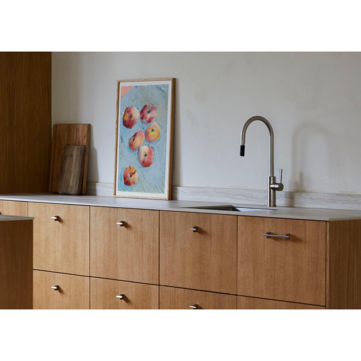 I love the Peaches print for its soft, painterly style which adds a touch of understated artistry to a space. It's versatile enough to work well in kitchens, living rooms, or even bedrooms, especially when paired with neutral or pastel palettes that let the artwork stand out. For practical styling, consider positioning this piece above a sideboard or sofa to create a focal point, and complementing it with minimal accessories to keep the look clean. Its size also makes it suitable for smaller walls or above furniture where you want to add a pop of colour without overwhelming the space. Overall, it's a charming piece that brings a gentle, fresh vibe to various interiors.